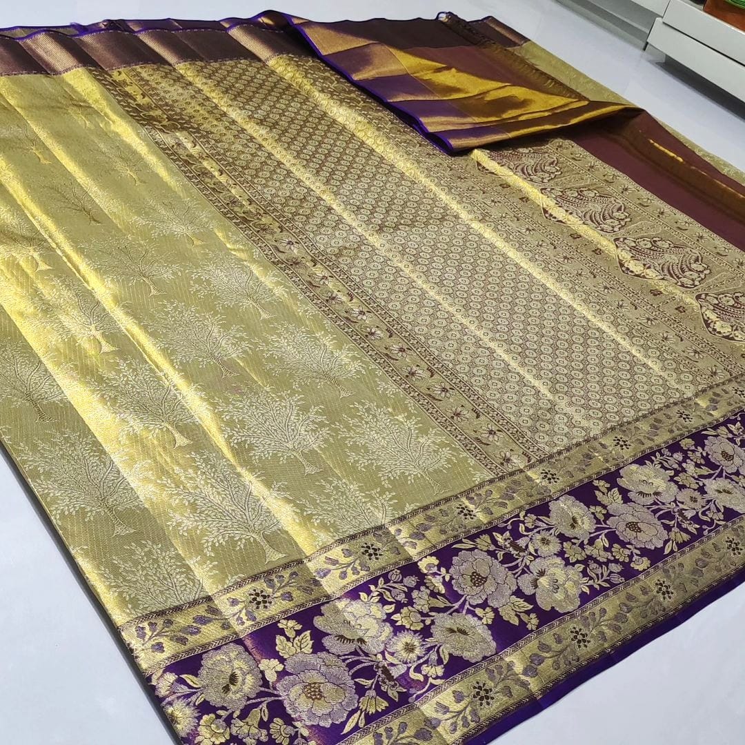 Gold Kanchipuram Handloom Tissue Brocade Silk Saree