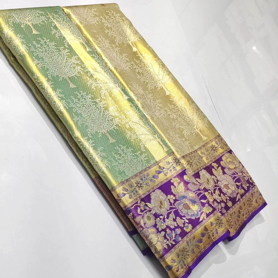 Lime Green Kanchipuram Handloom Tissue Brocade Silk Saree