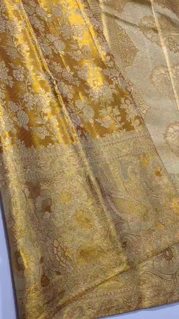 Gold Kanchipuram Handloom Tissue Brocade Bridal Silk Saree