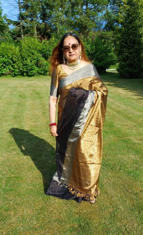 Gold, Silver & Black Chanderi Handloom Metallic Tissue Silk Contemporary Saree