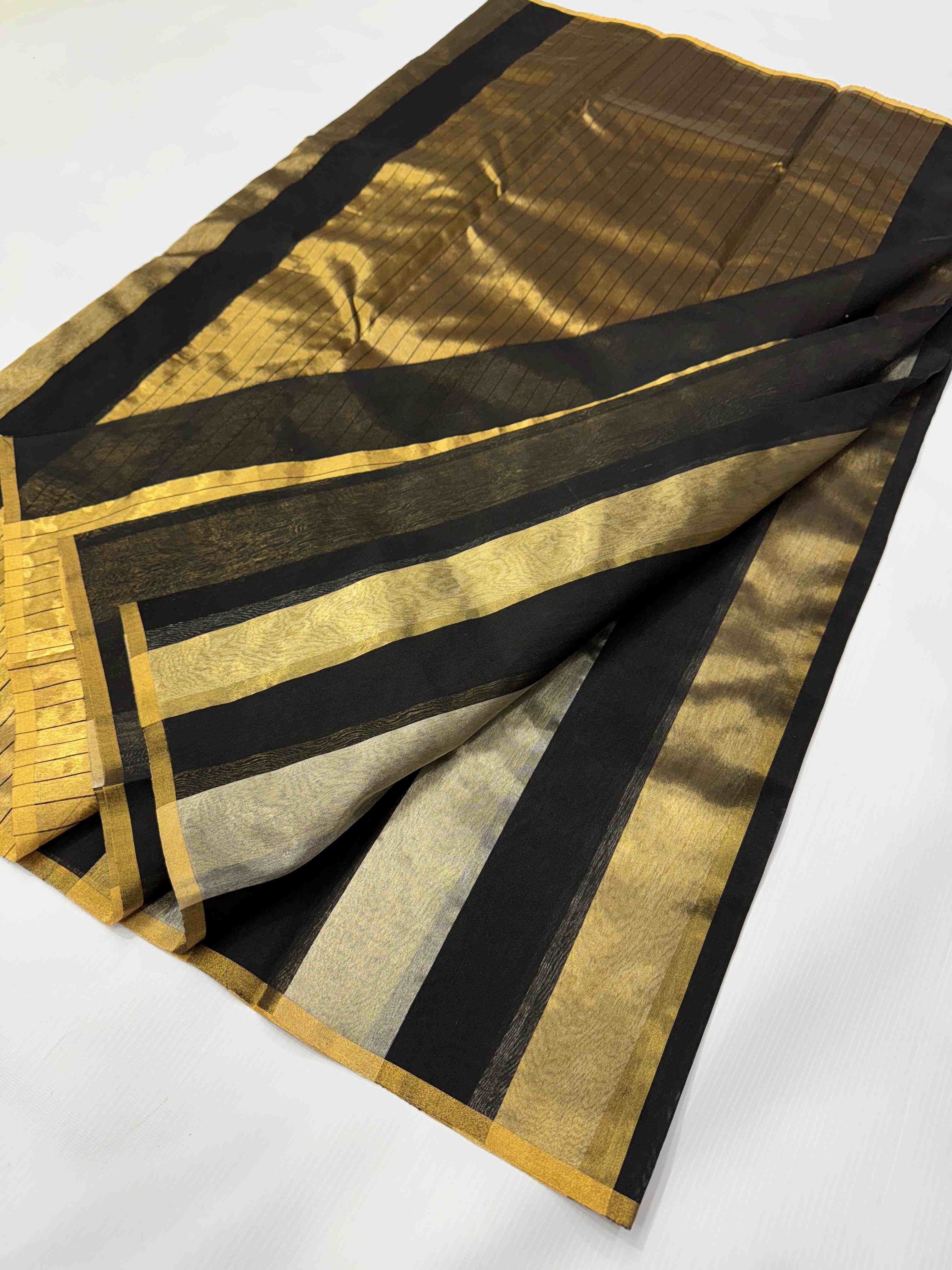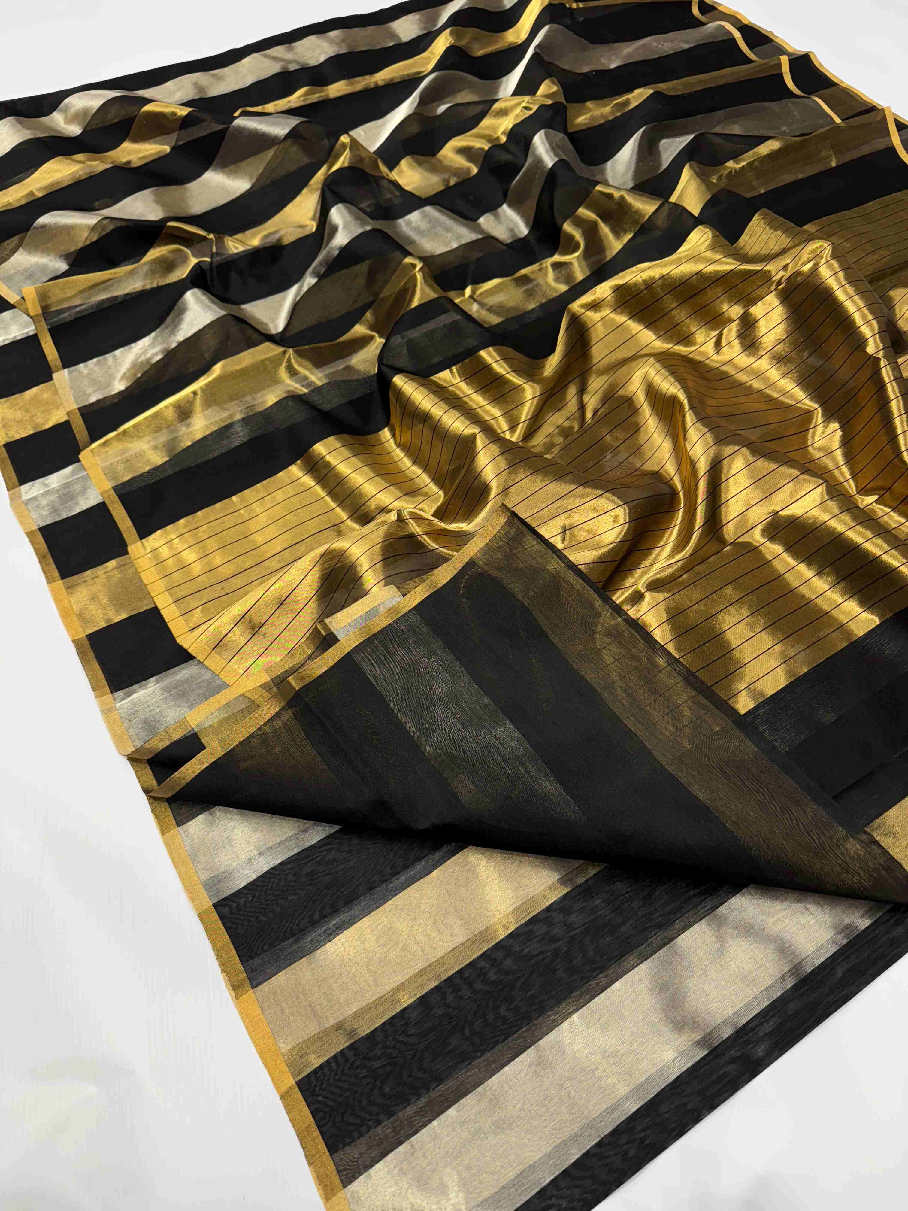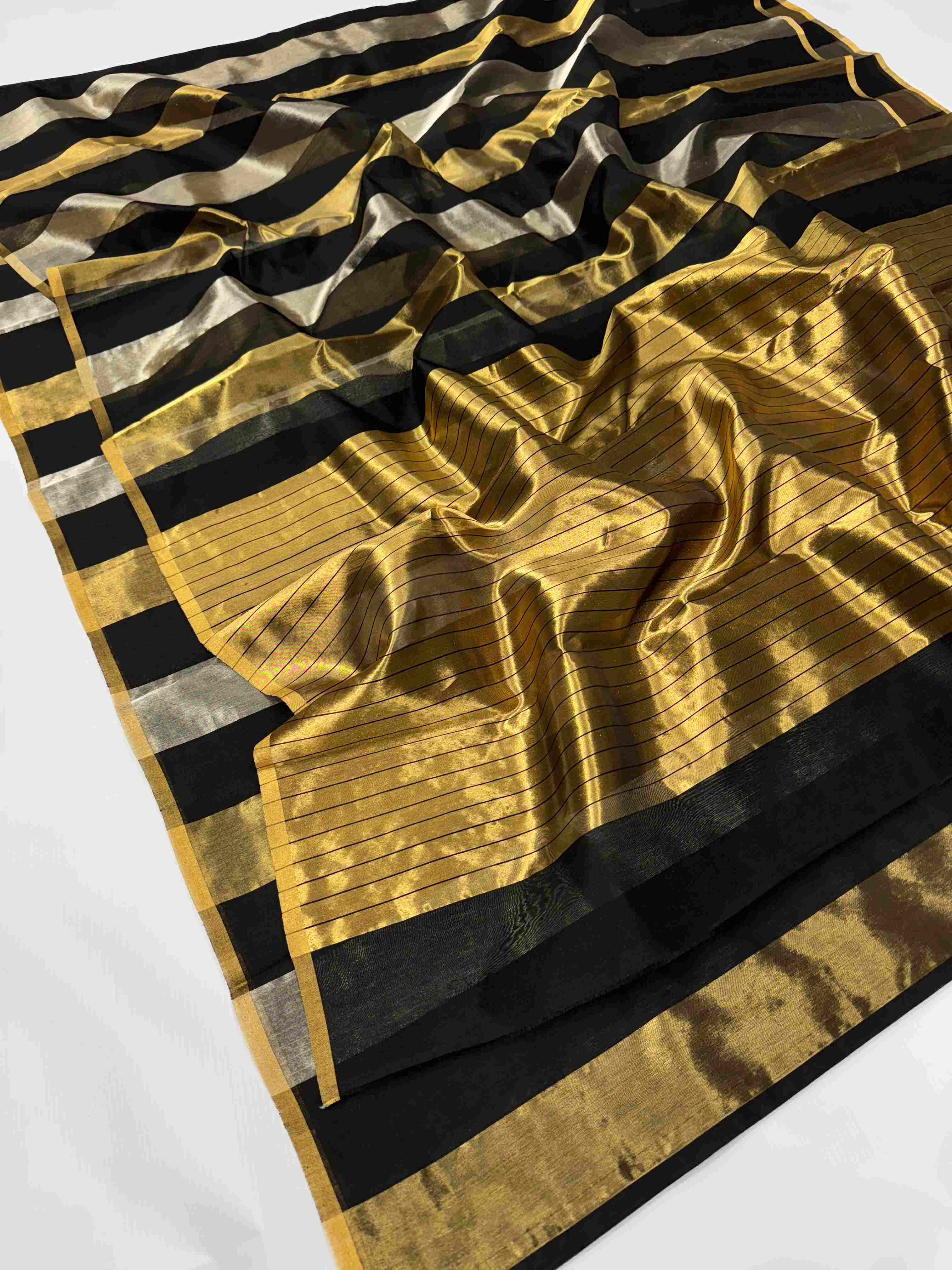 Gold, Silver & Black Chanderi Handloom Metallic Tissue Silk Contemporary Saree