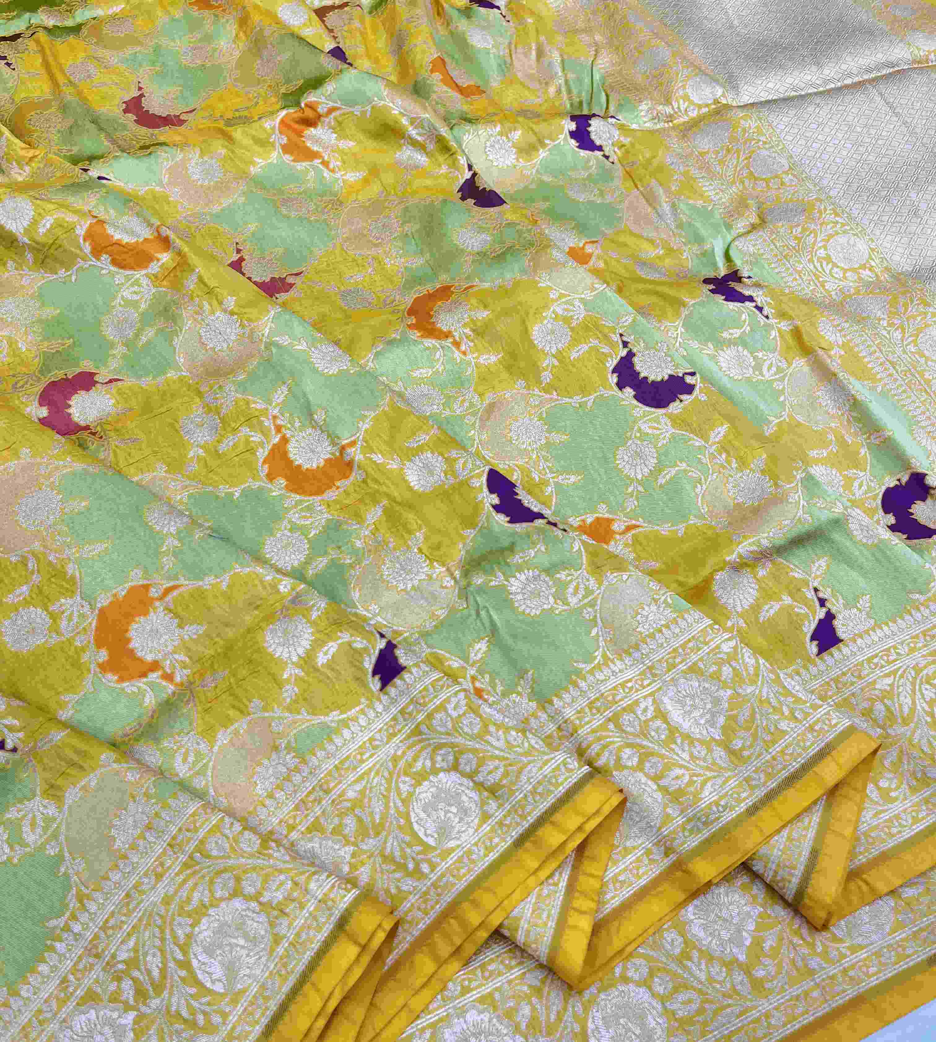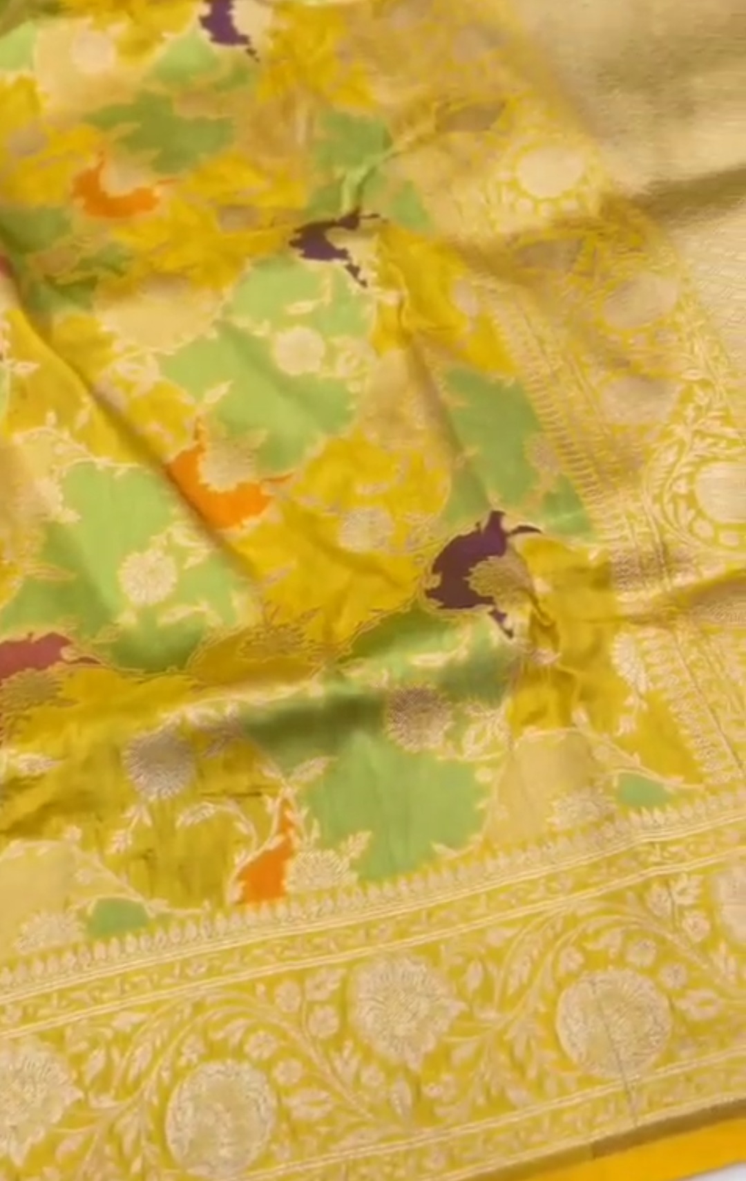 Golden Yellow Banarasi Handloom Katan Silk Meenakari Saree