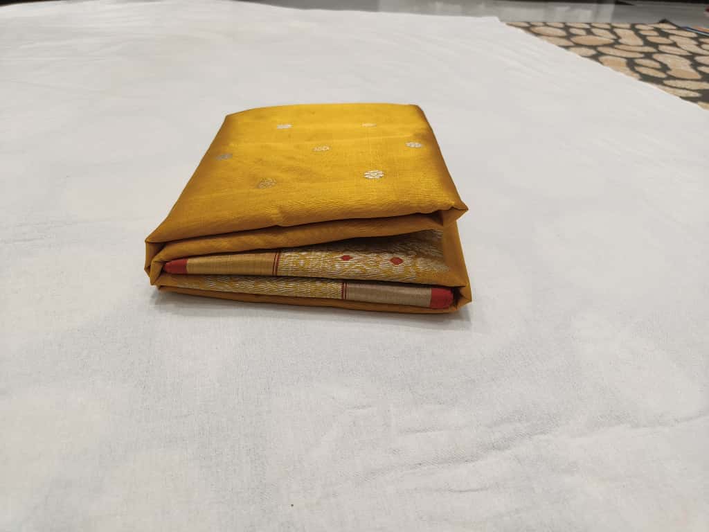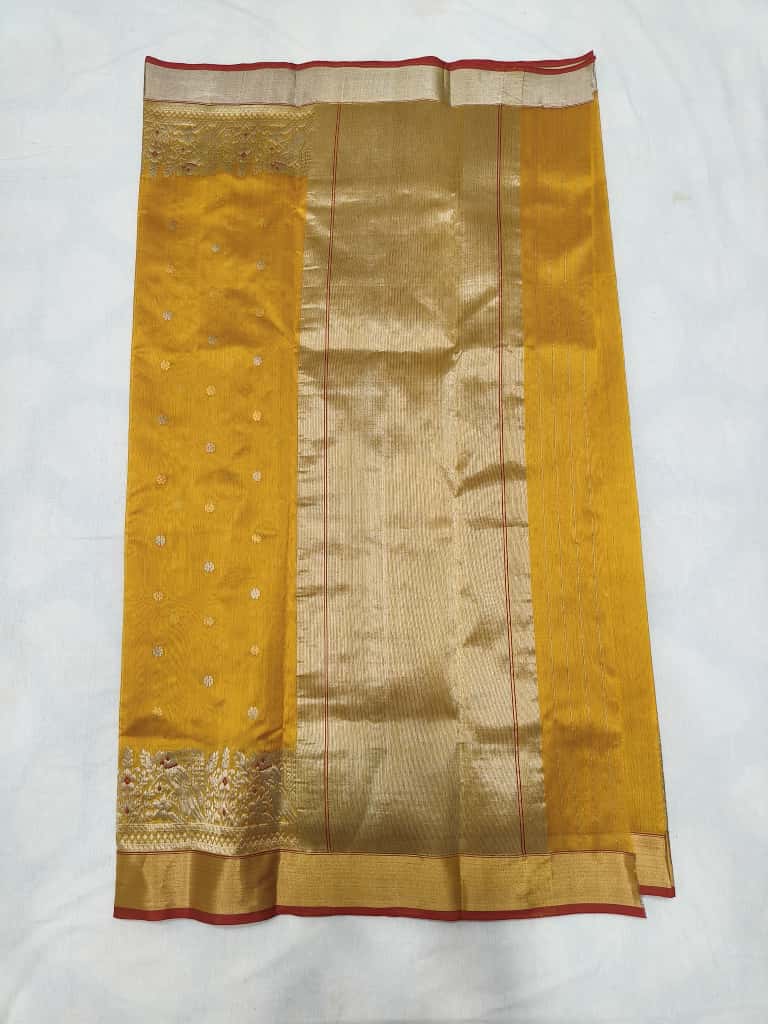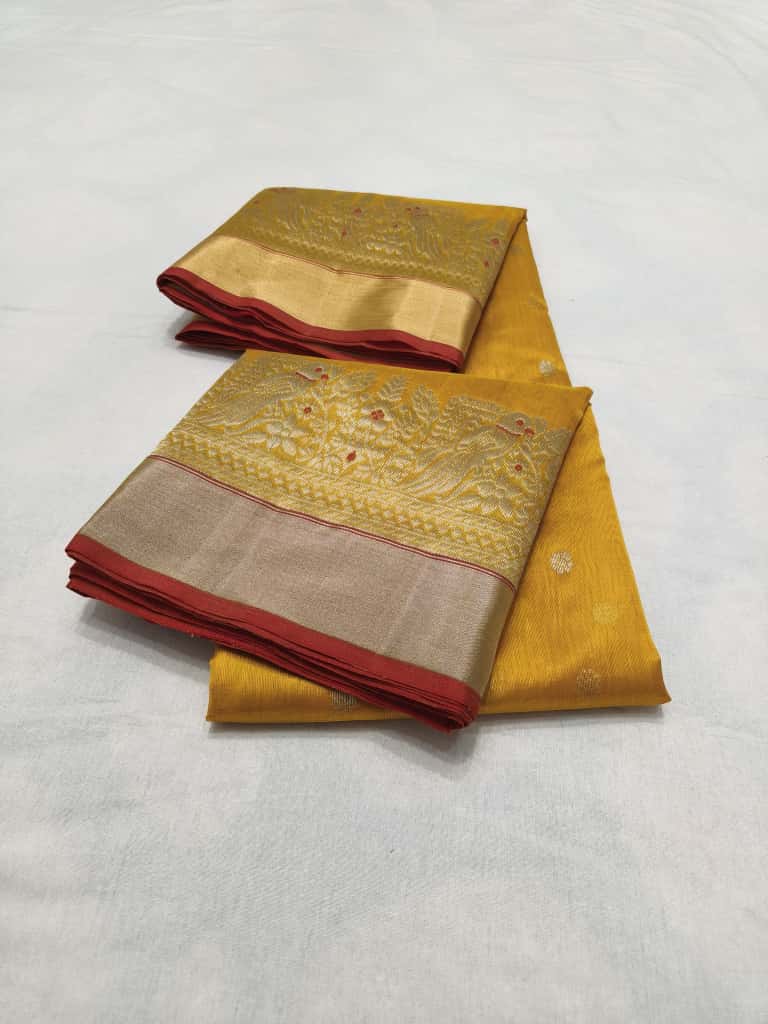 Golden Yellow Handloom Pattu Silk Meenakari Handwork Saree