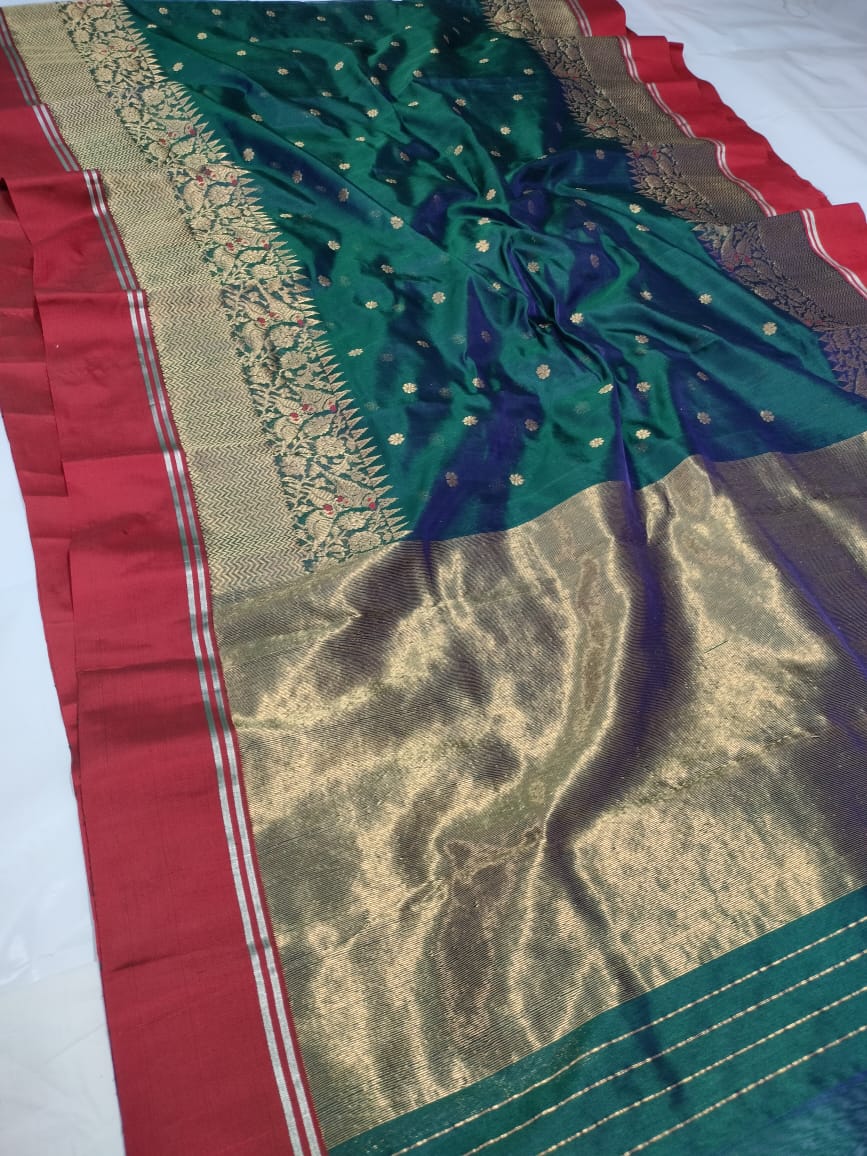 Bottle Green Chanderi Handloom Pattu Silk Meenakari Saree