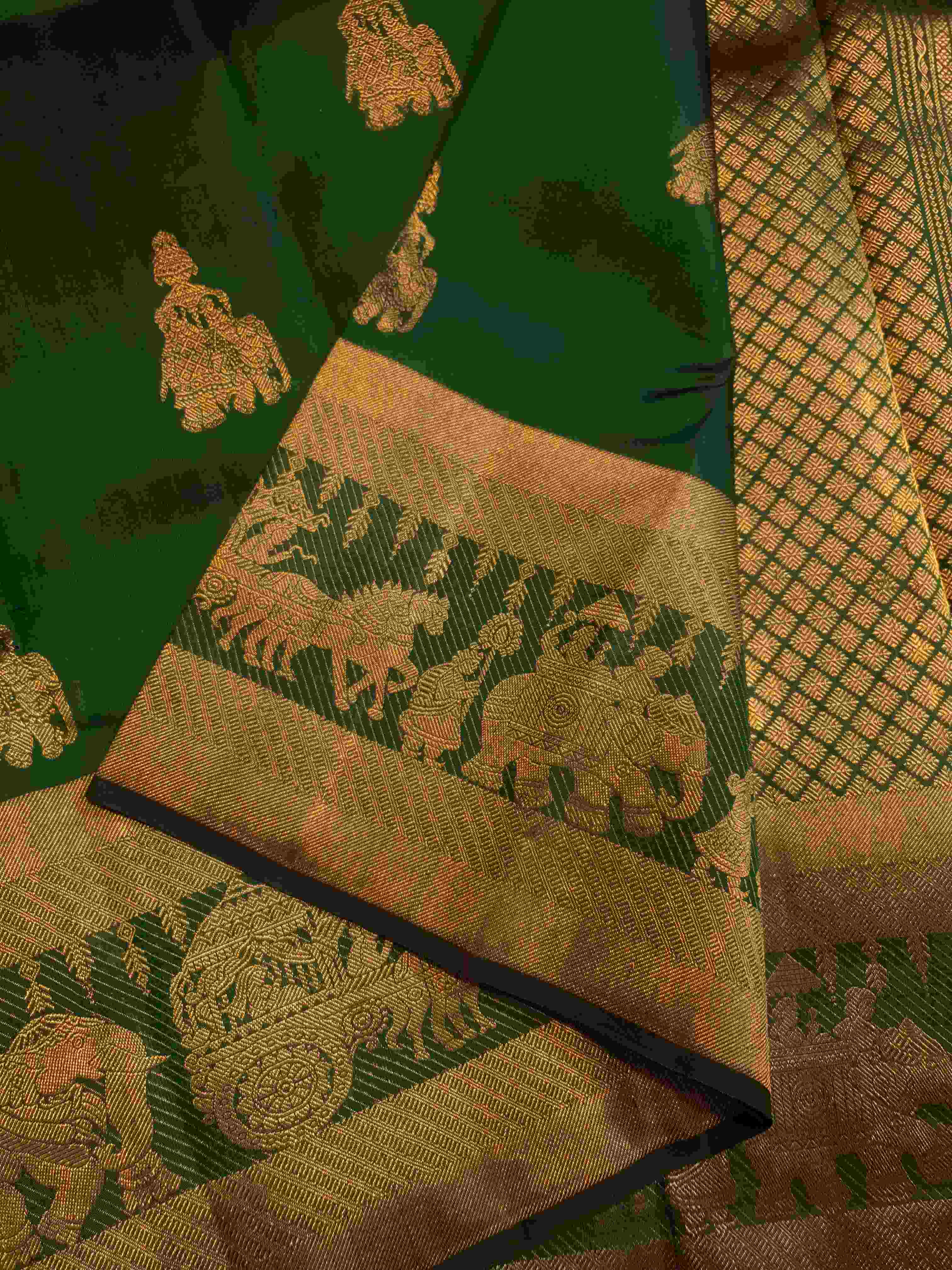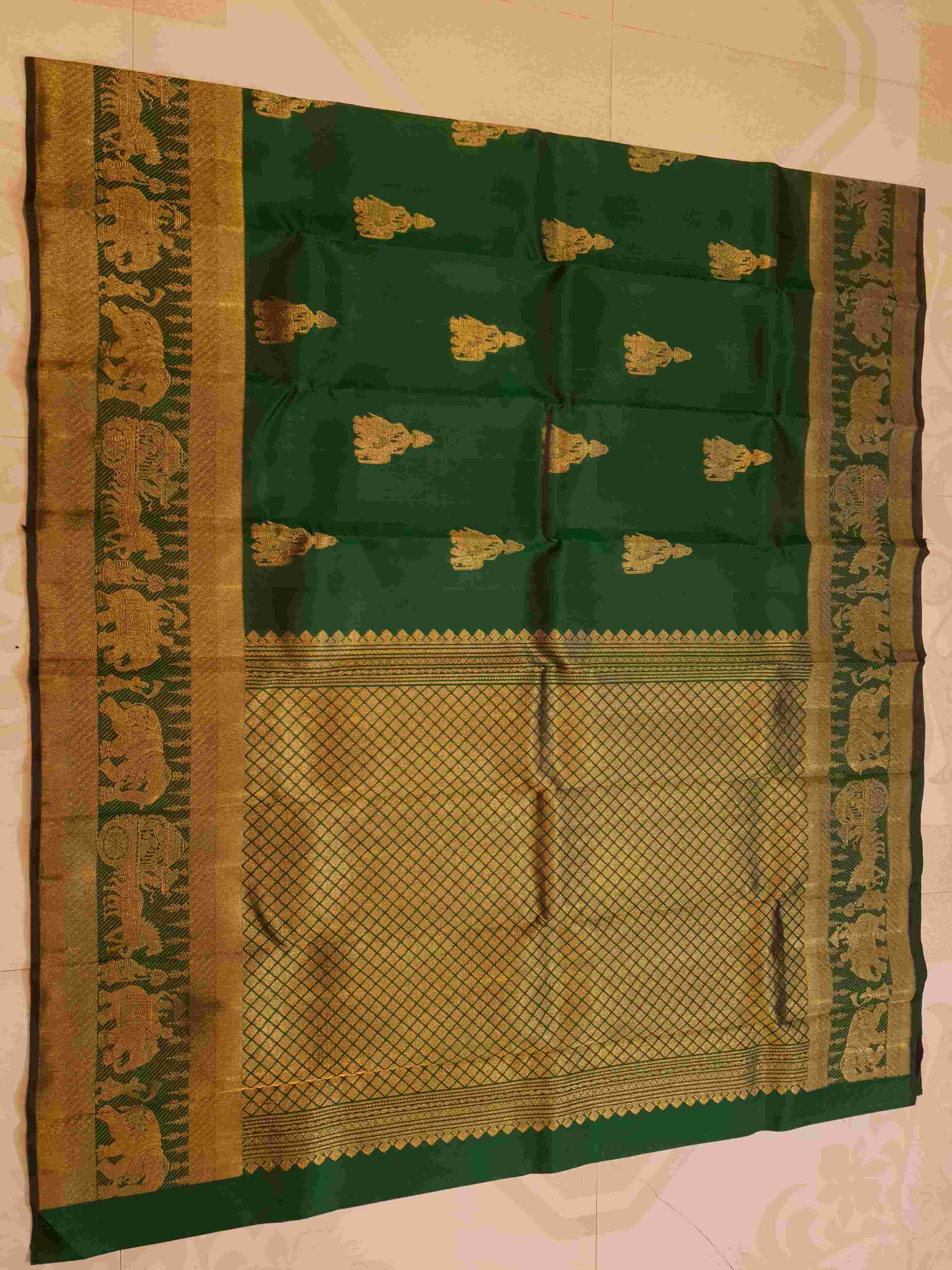 Bottle Green Kanchipuram Handloom 2G Gold Pattu Silk Saree