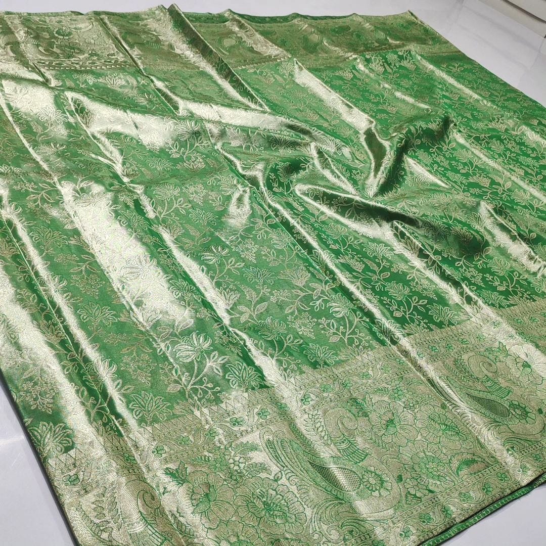 Green Kanchipuram Handloom Tissue Brocade Silk Saree