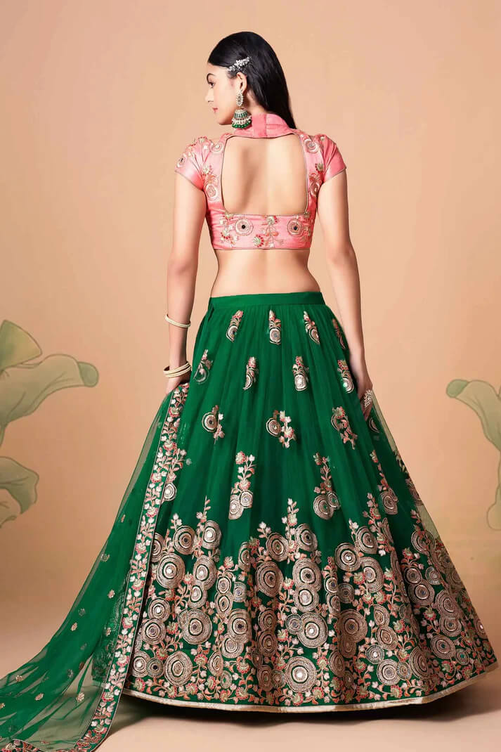 Green Soft Net Lehenga, Green Zari Work Lehenga, Sequins Embroidery Green Lehenga, Green Mirror Work Lehenga, Designer Green Lehenga Choli, Party Wear Green Lehenga
