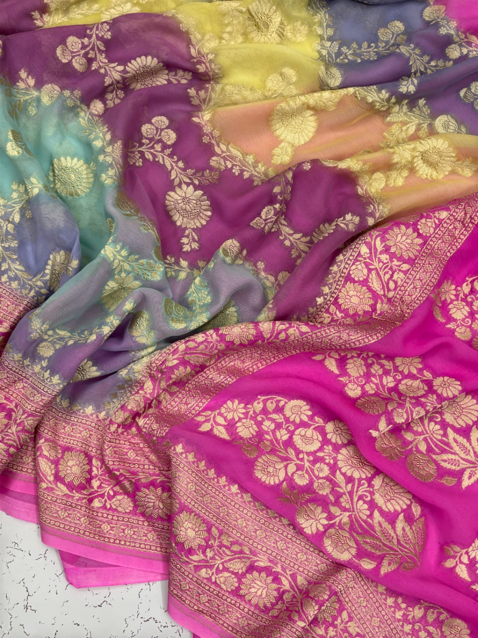 Hot Pink Banarasi Handloom Exquisite Rangkaat Georgette Silk Saree