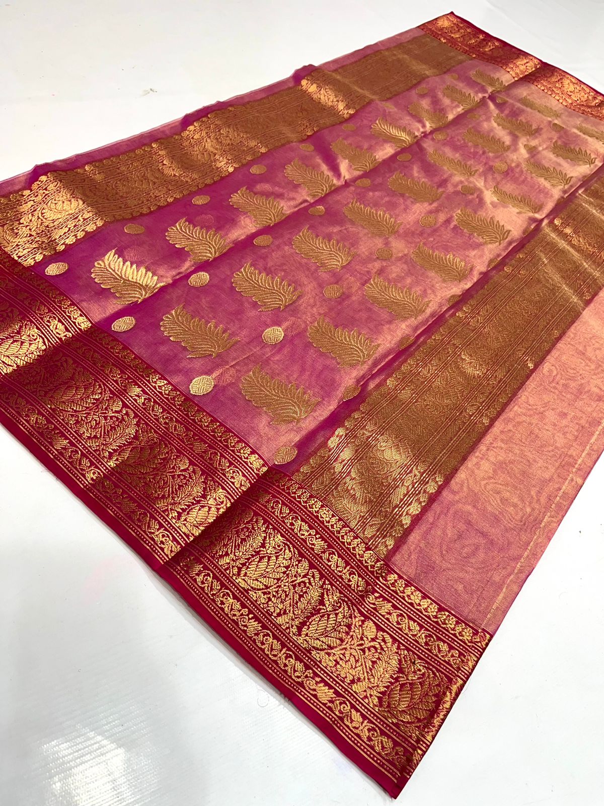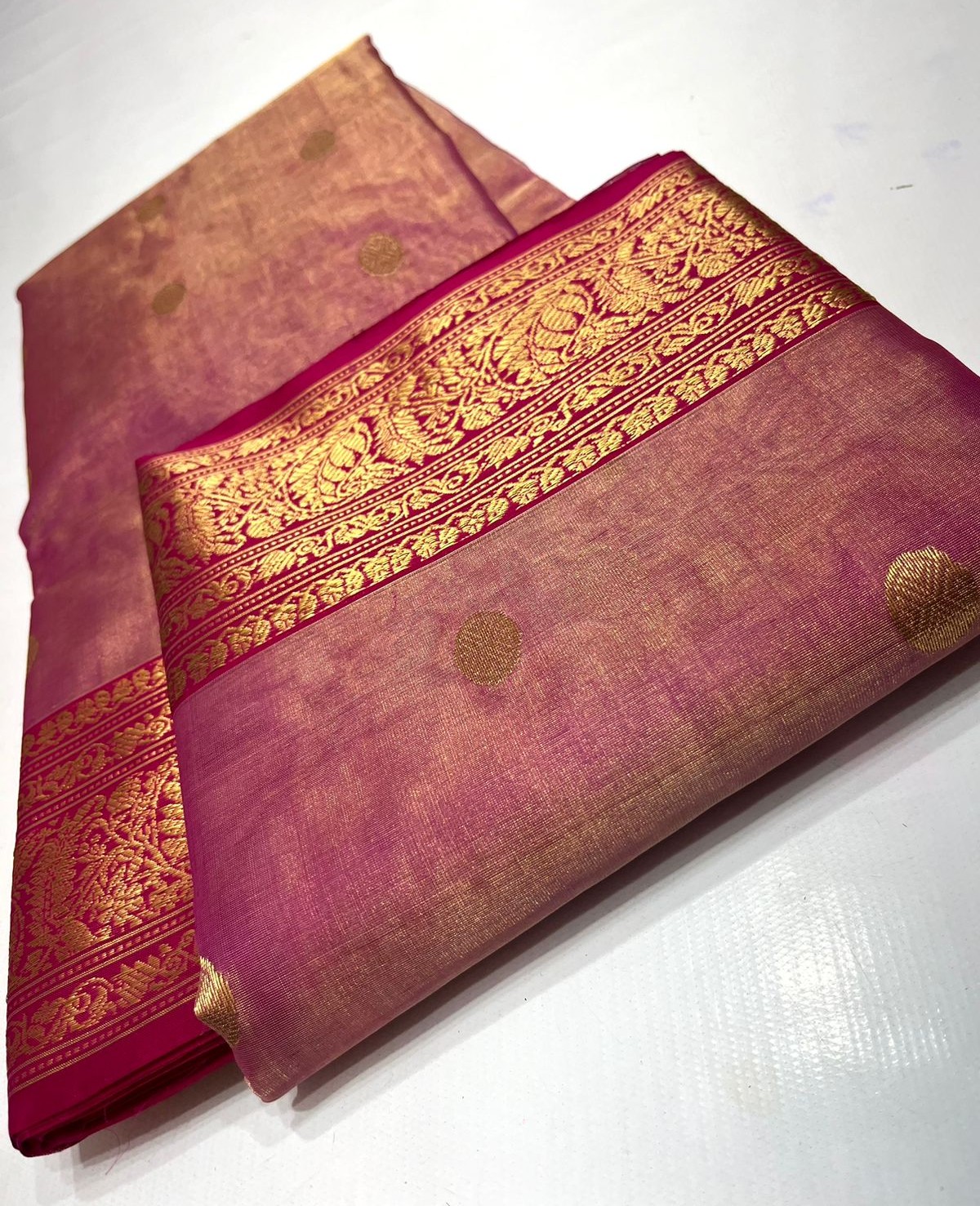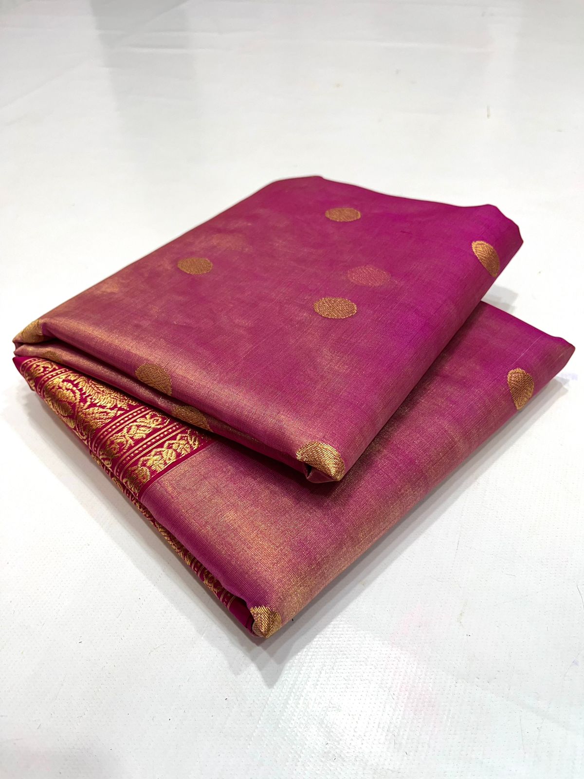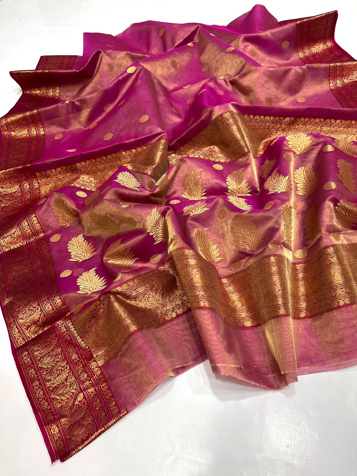 Hot Pink Chanderi Handloom Katan Tissue Silk Saree