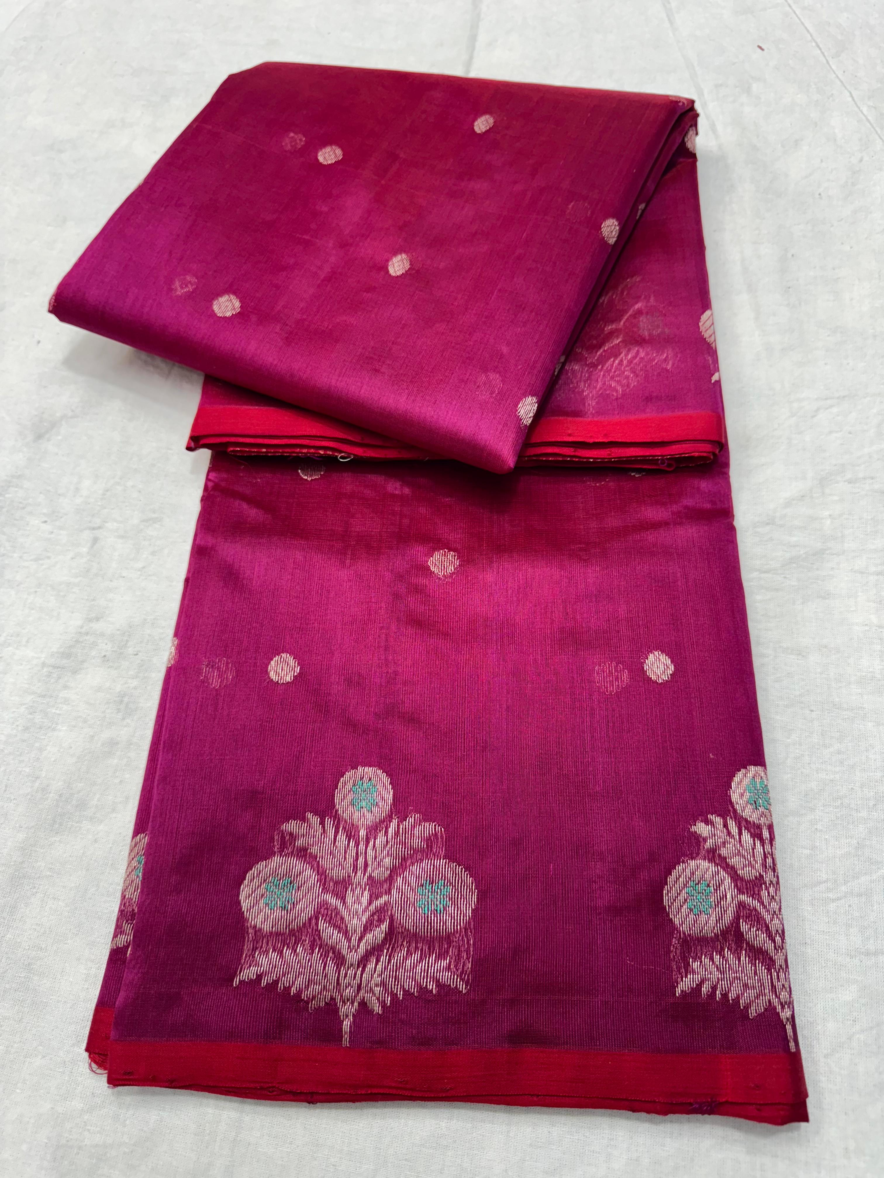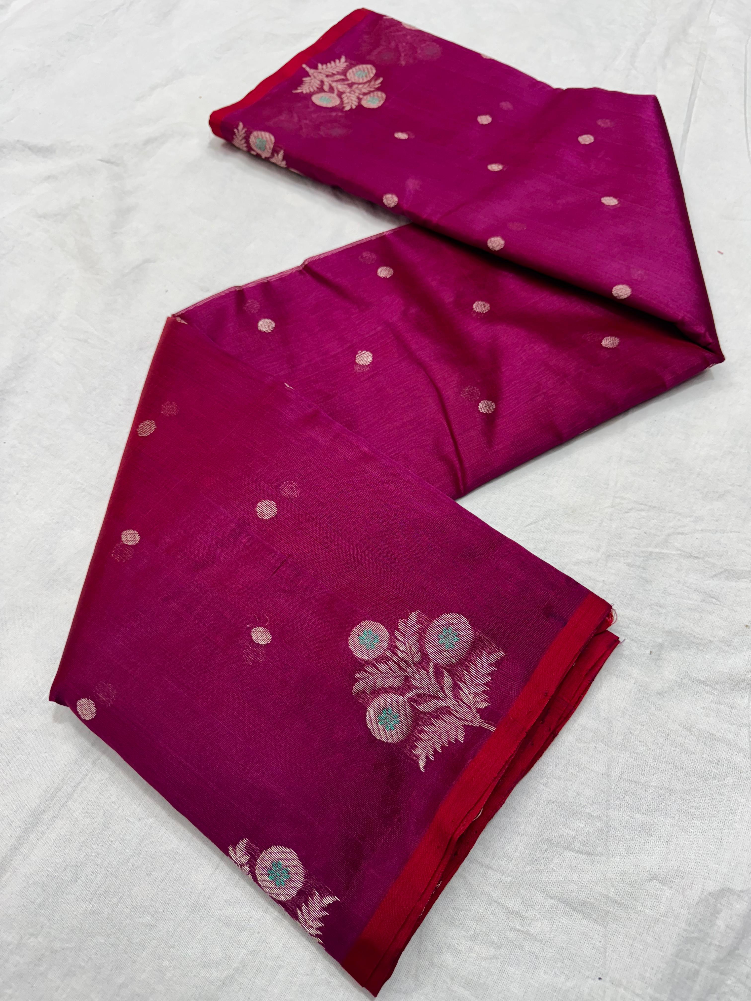 Magenta Chanderi Handloom Pattu Silk Saree