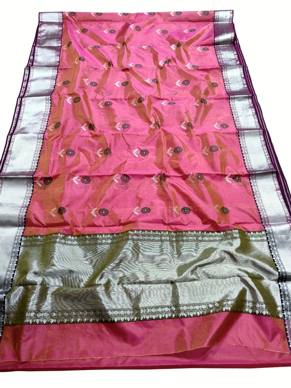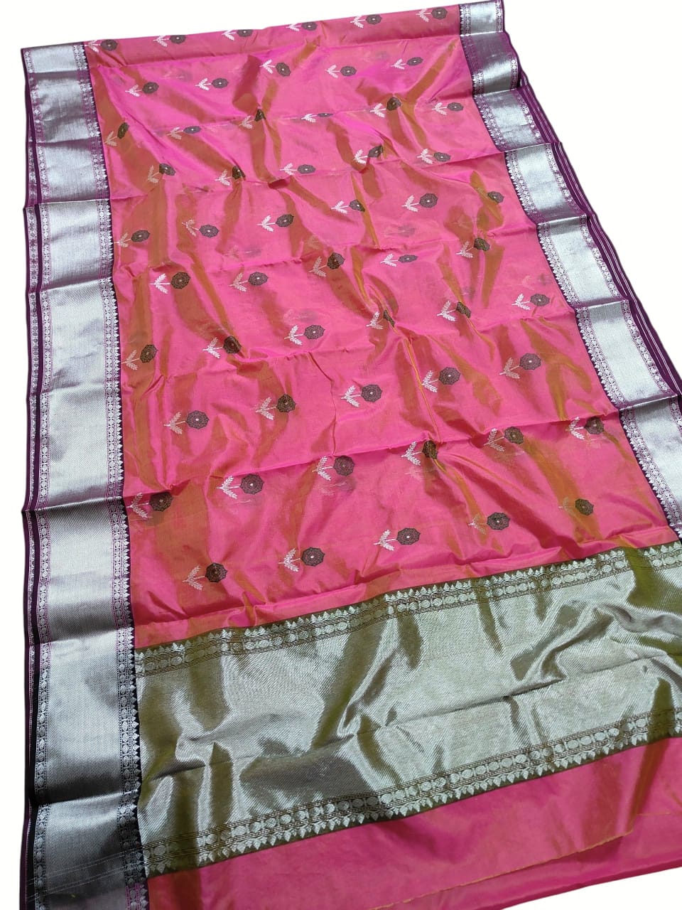 Nakshi Borders, Butta, Meenakari, Silver Zari