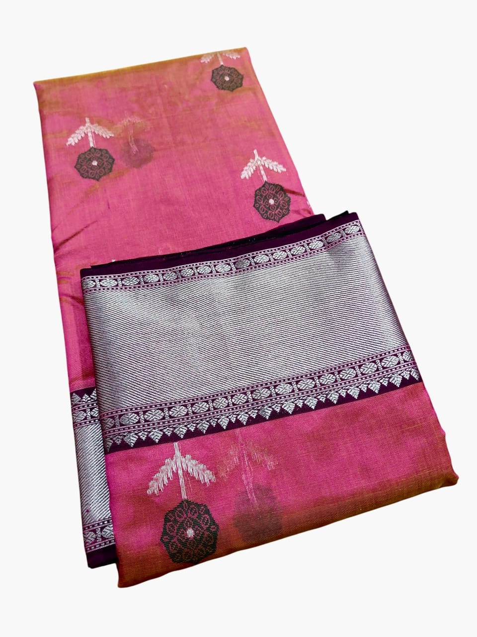 Dual Tone Pink Chanderi Handloom Pattu Silk Meenakari saree