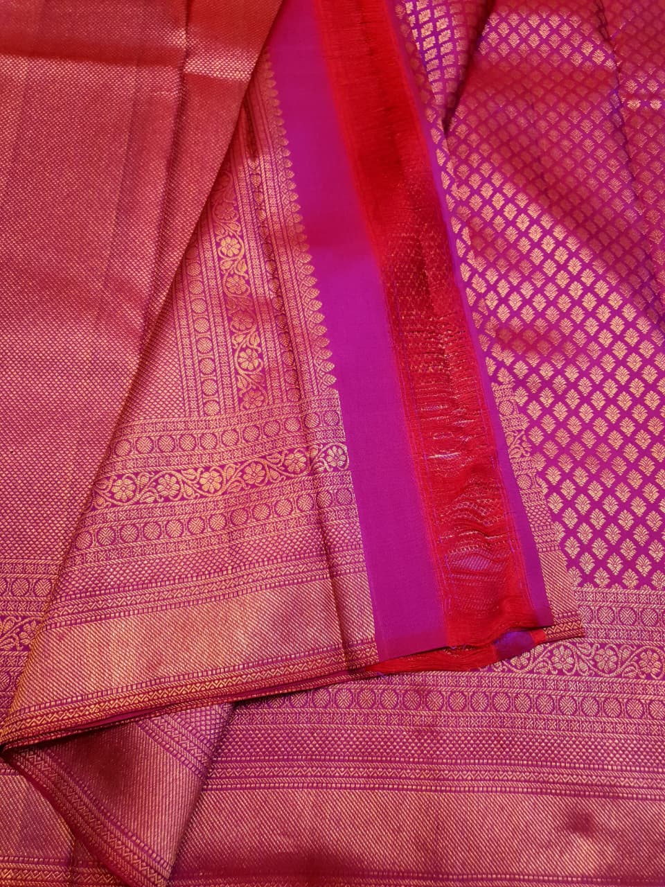 Dark Pink Kanchipuram Handloom 2G Gold Bridal Silk Saree