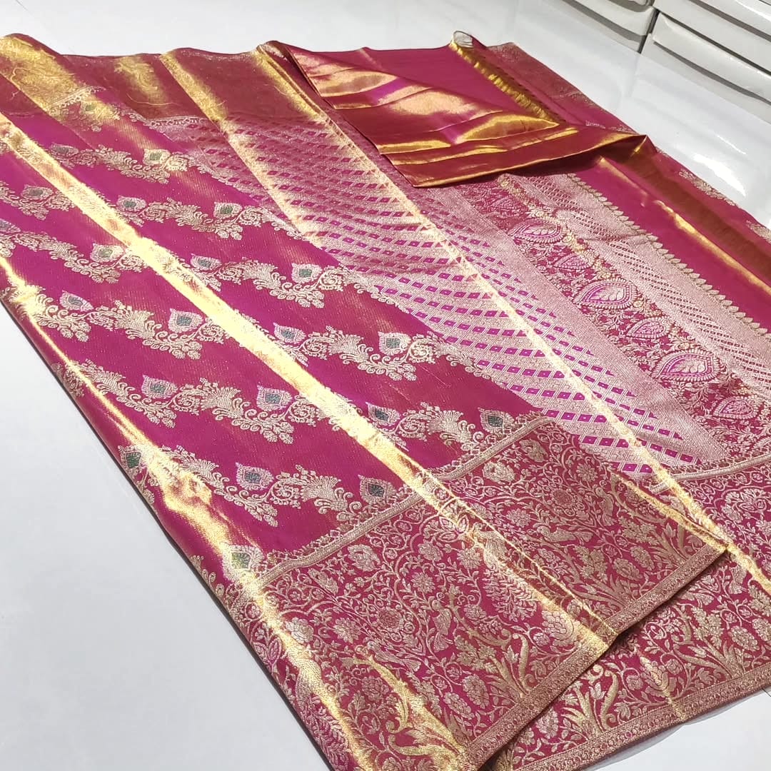Magenta Kanchipuram Handloom Tissue 1G Brocade Silk Saree
