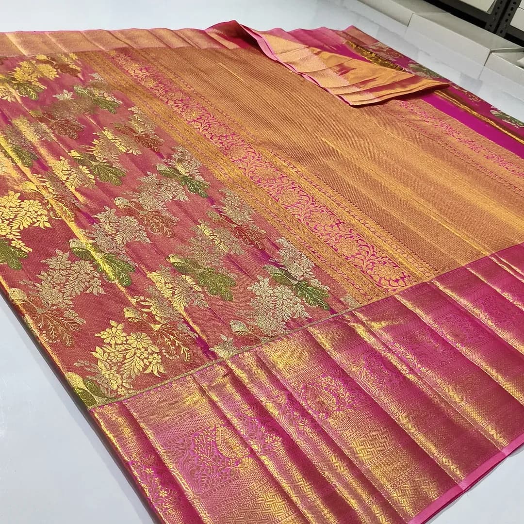 Onion Pink Kanchipuram Handloom Tissue Brocade Silk Saree