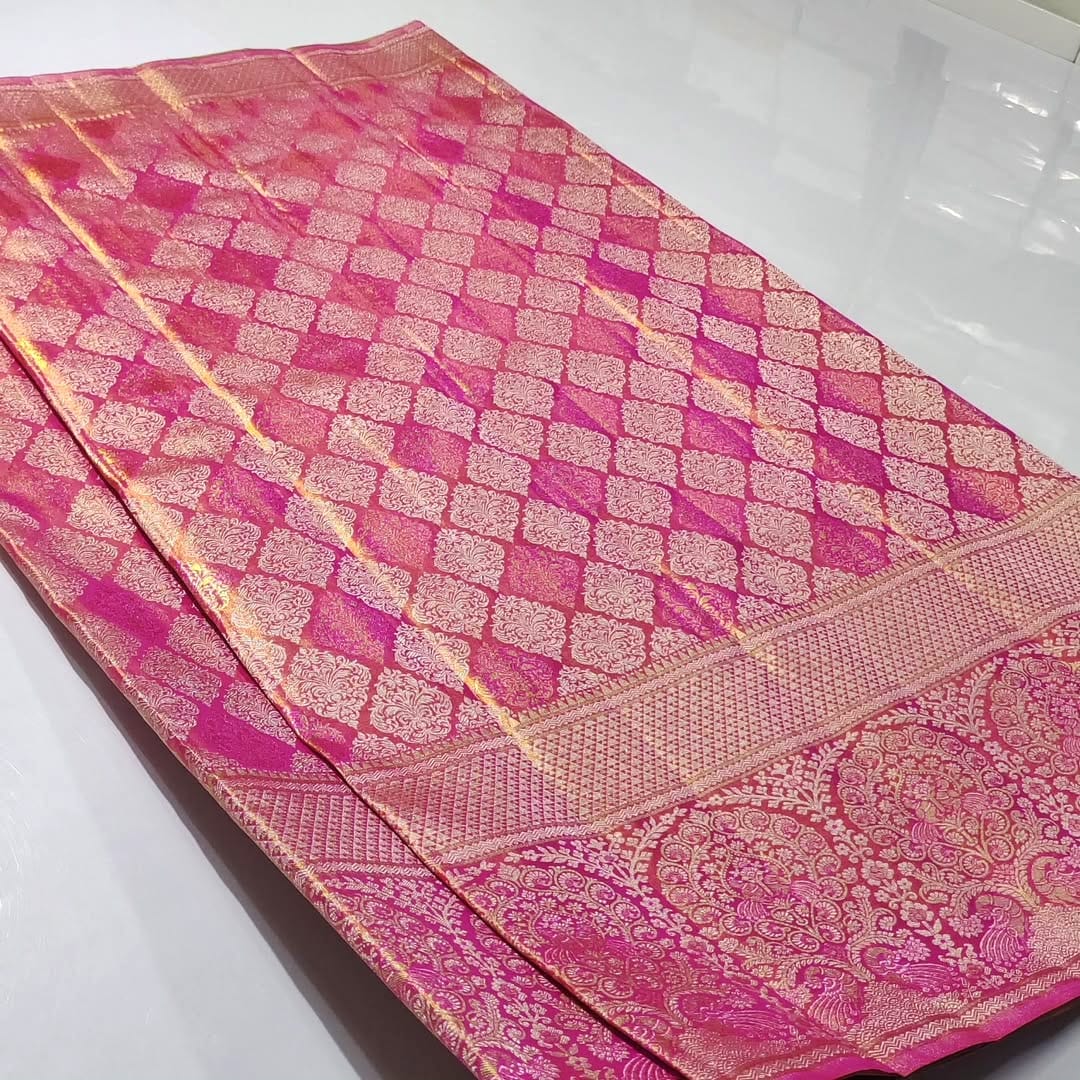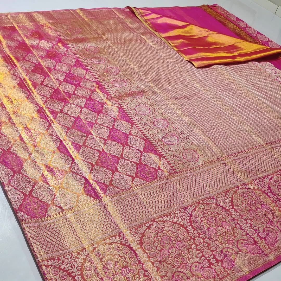 Hot Pink Kanchipuram Handloom Tissue Brocade Silk Saree