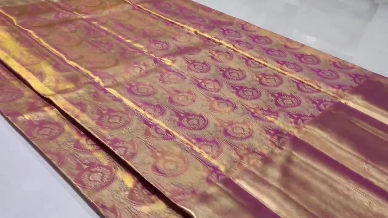 Onion Pink Kanchipuram Handloom Tissue Brocade Silk Saree