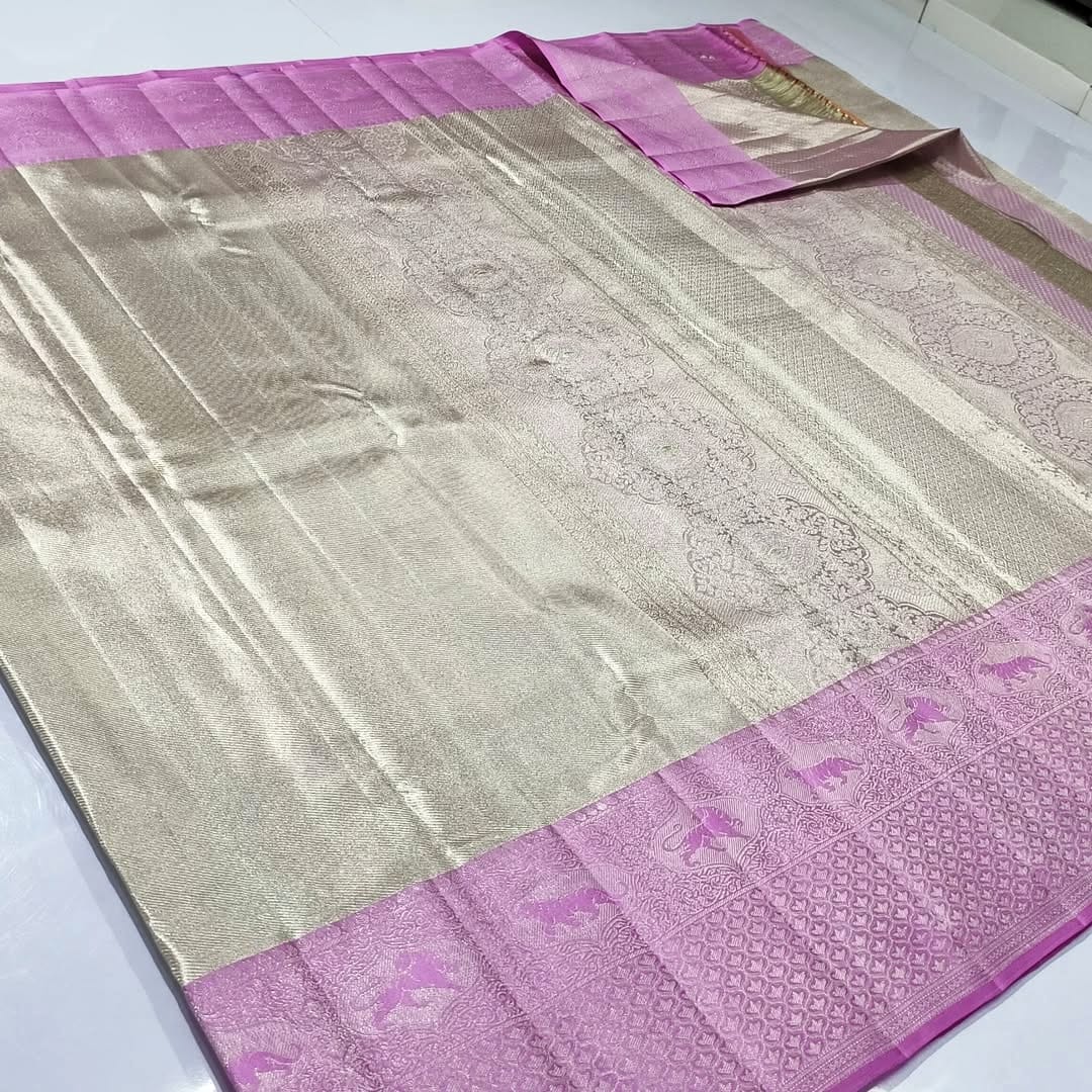 Lavender Kanchipuram Handloom Tissue Brocade Meenakari Silk Saree
