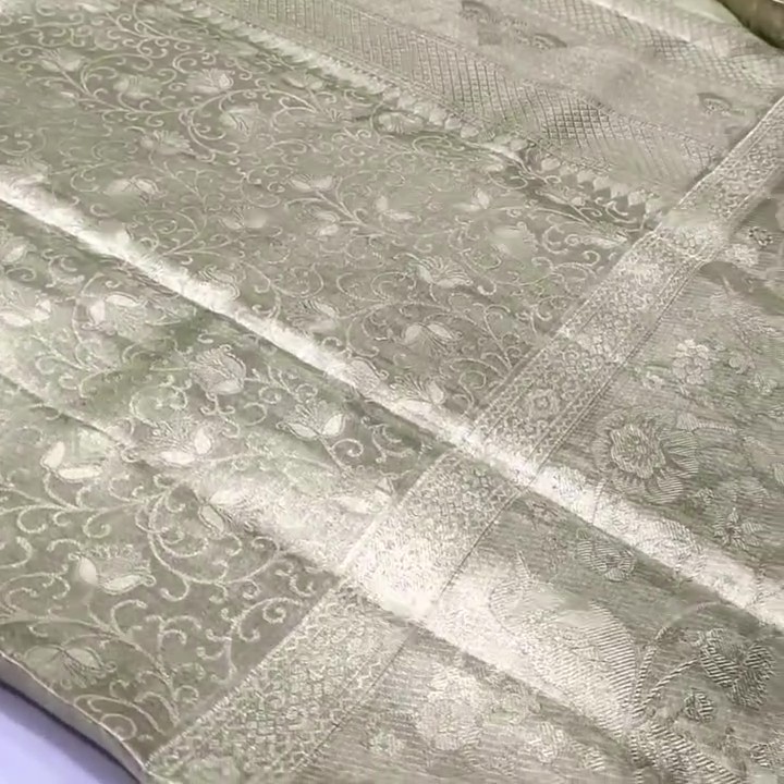 Pastel Green Kanchipuram Handloom Tissue Brocade Silk Saree