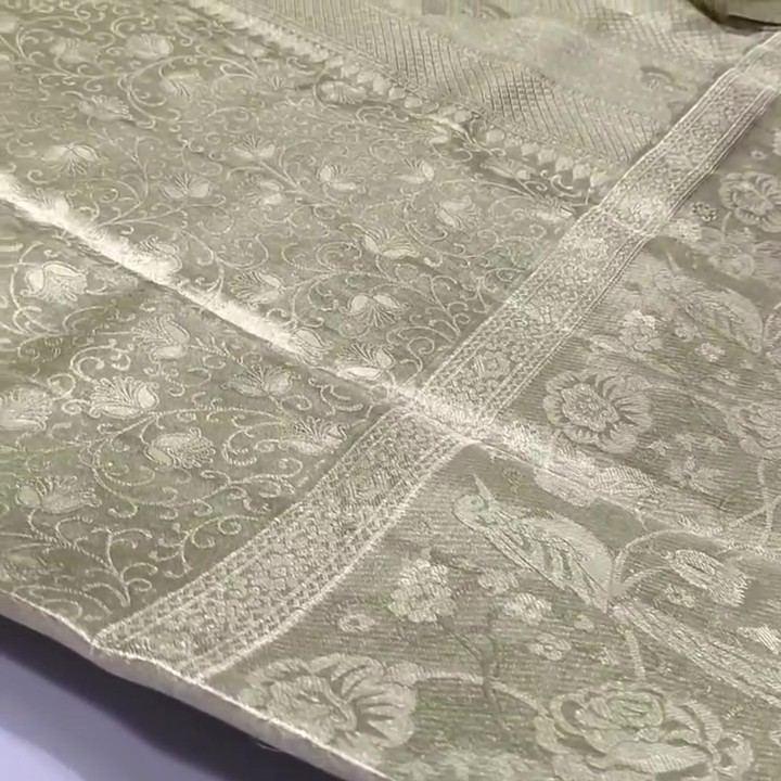Olive Kanchipuram Handloom Tissue Brocade Silk Saree