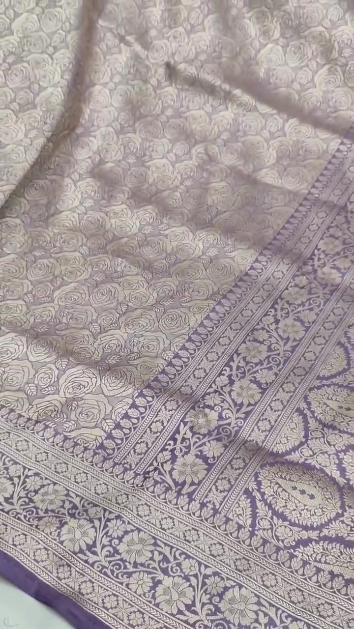 Lavender Banarasi Handloom Katan Silk Brocade Saree