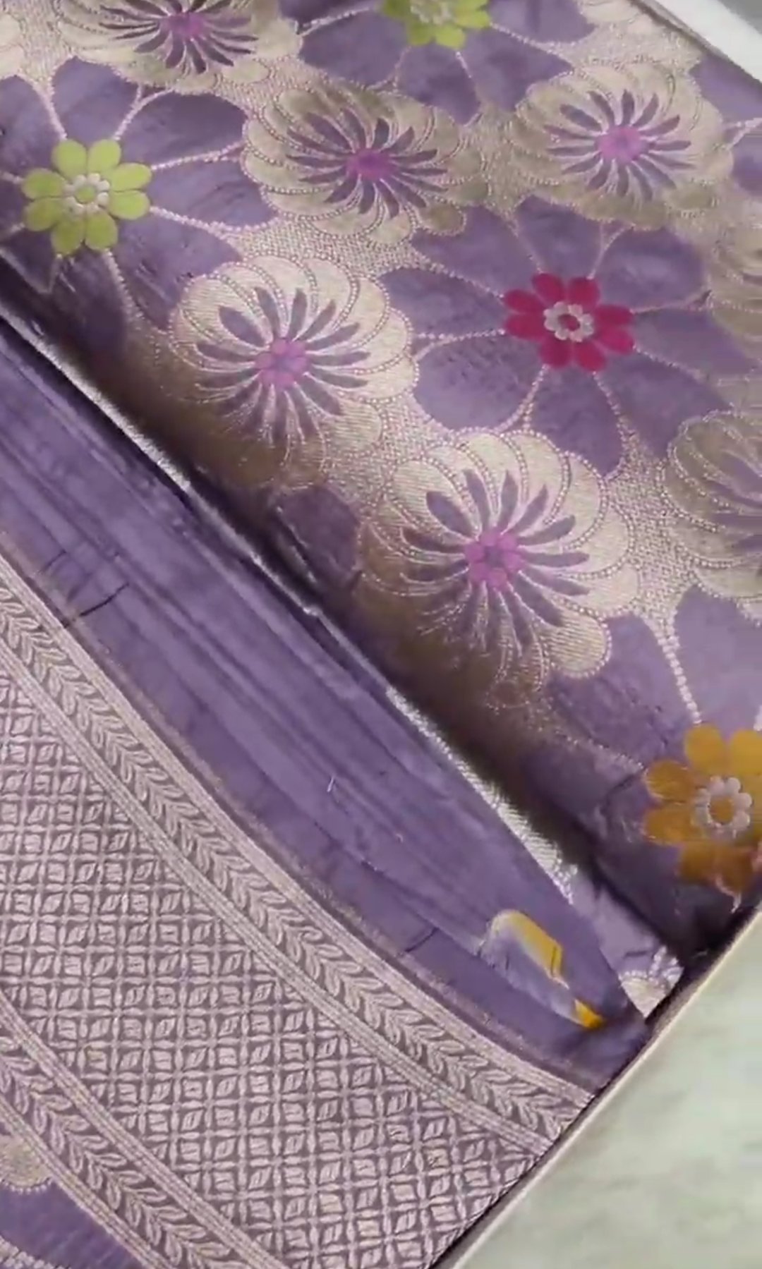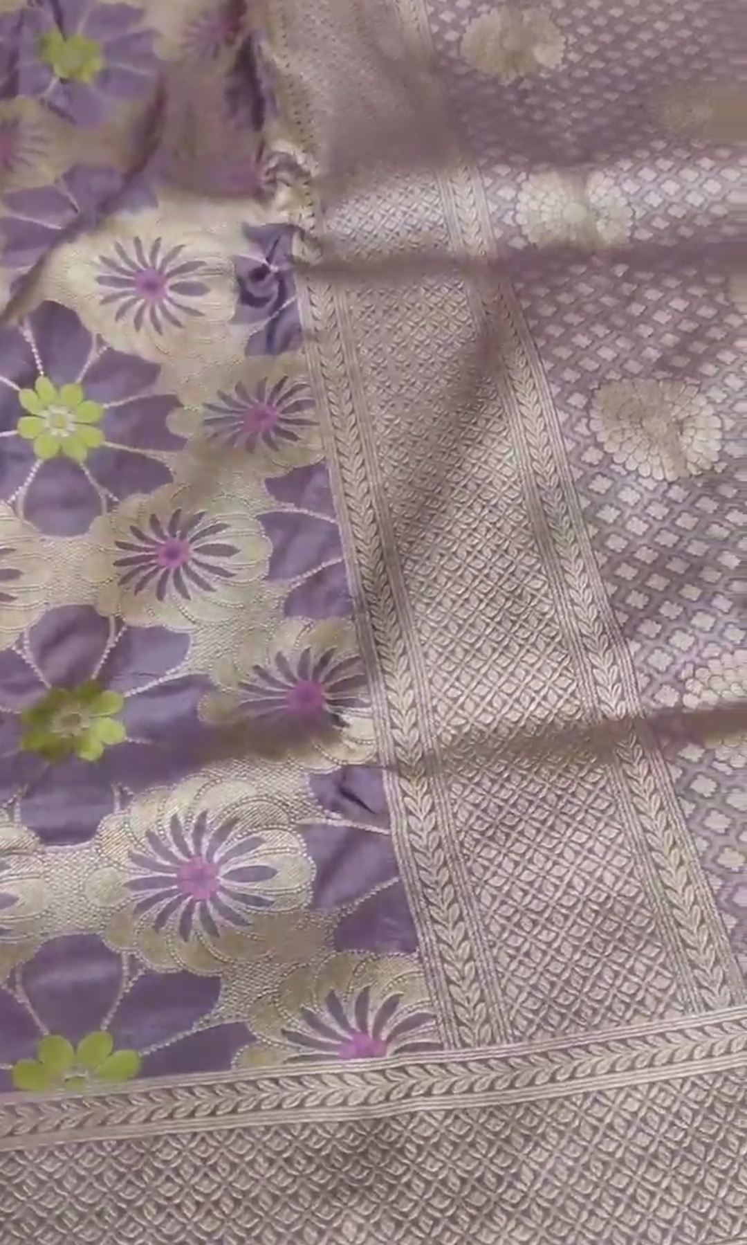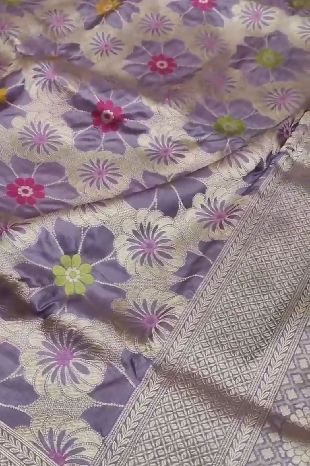 Lavender Banarasi Handloom Katan Silk Meenakari Saree