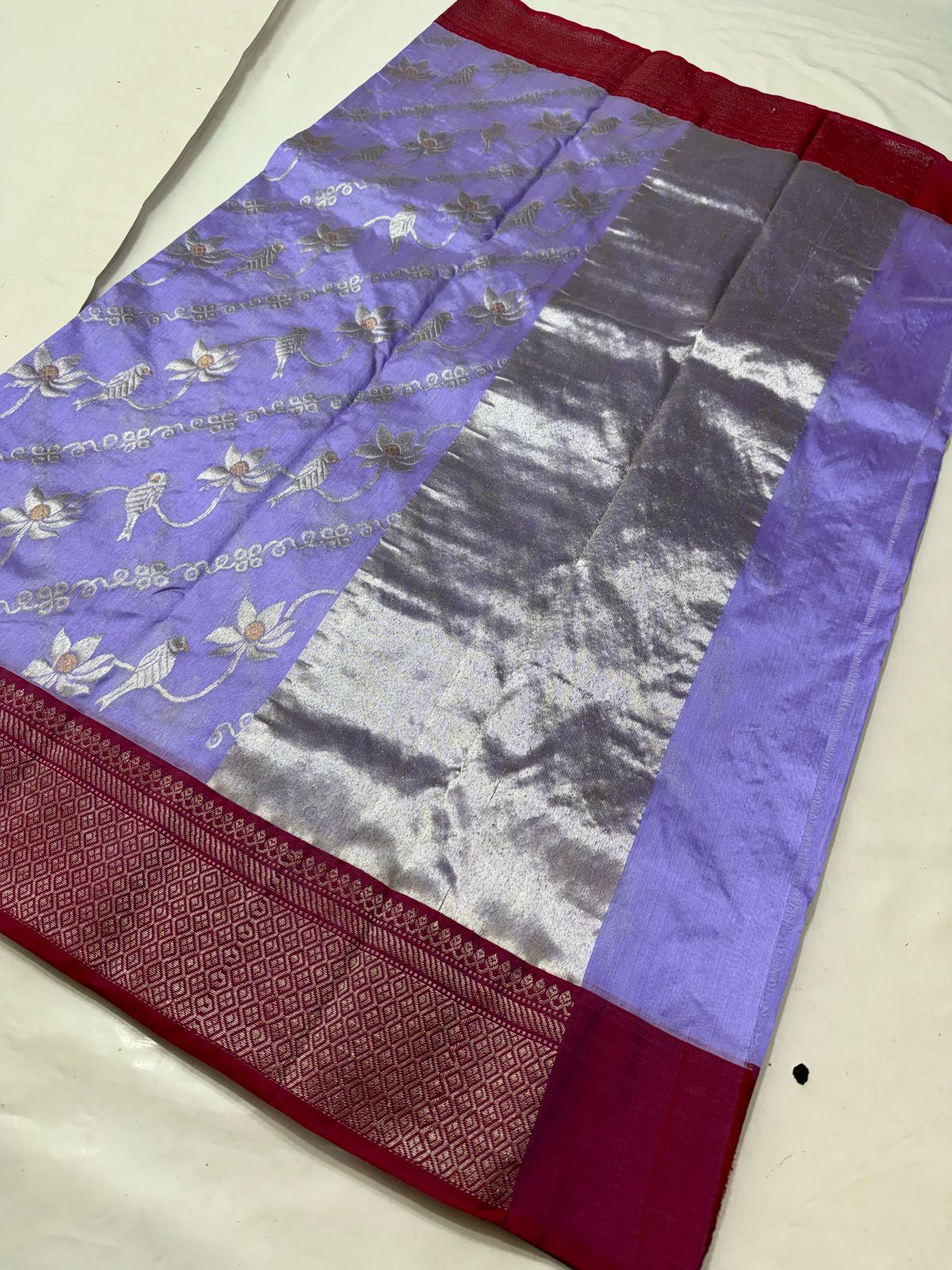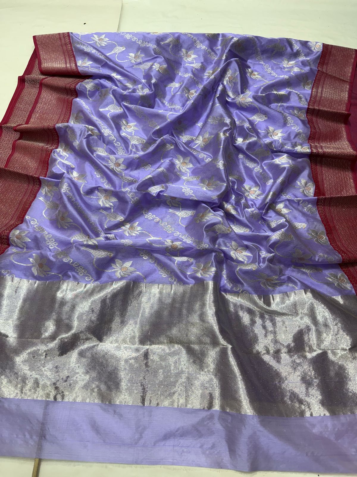 Lilac Chanderi Handloom Pattu Silk Meenakari Saree