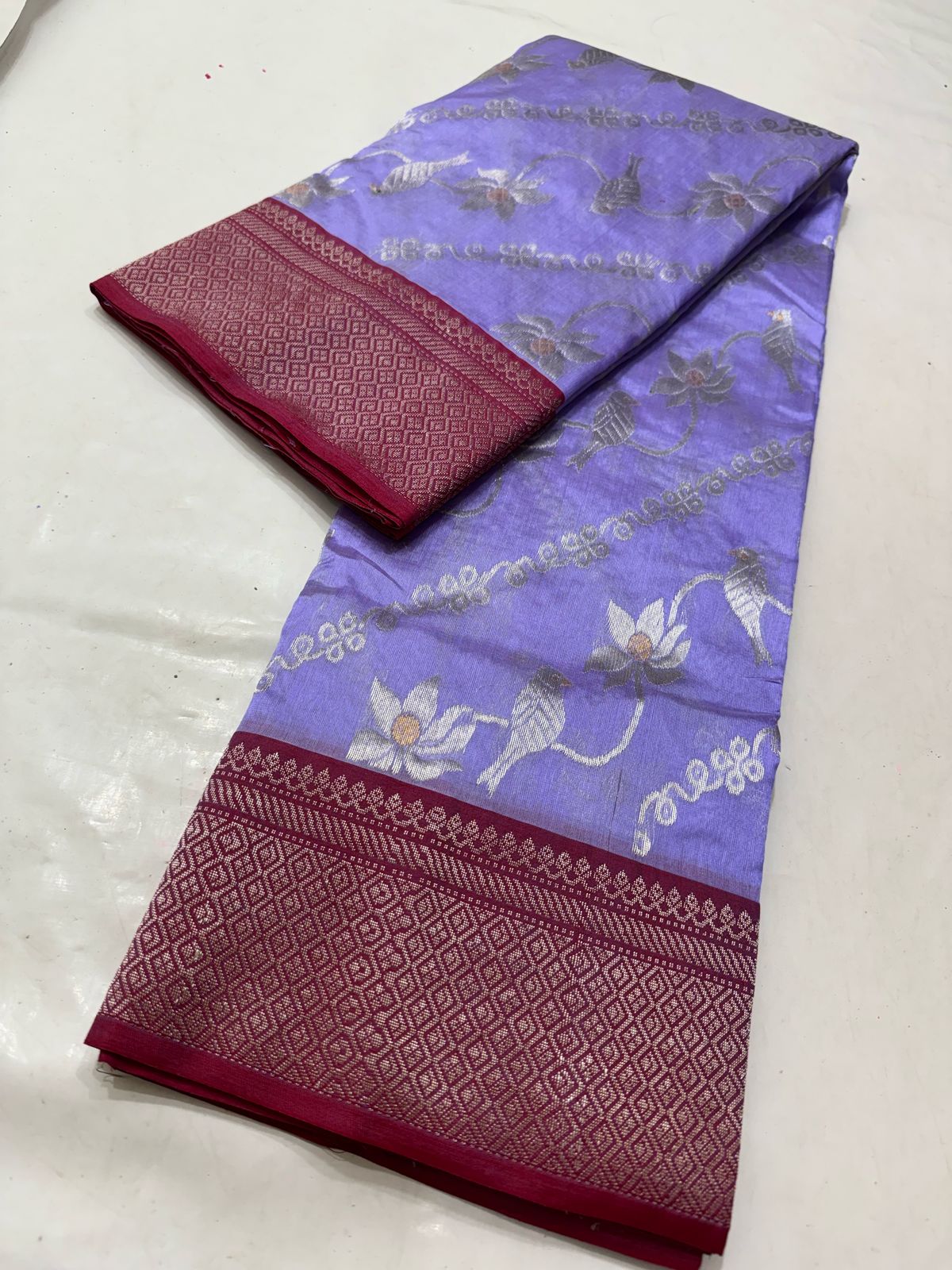 Lavender Chanderi Handloom Pattu Silk Meenakari Saree
