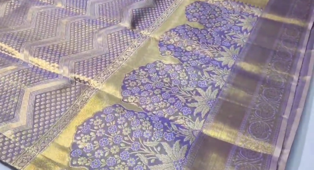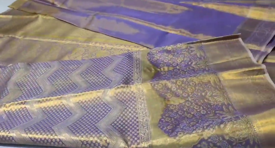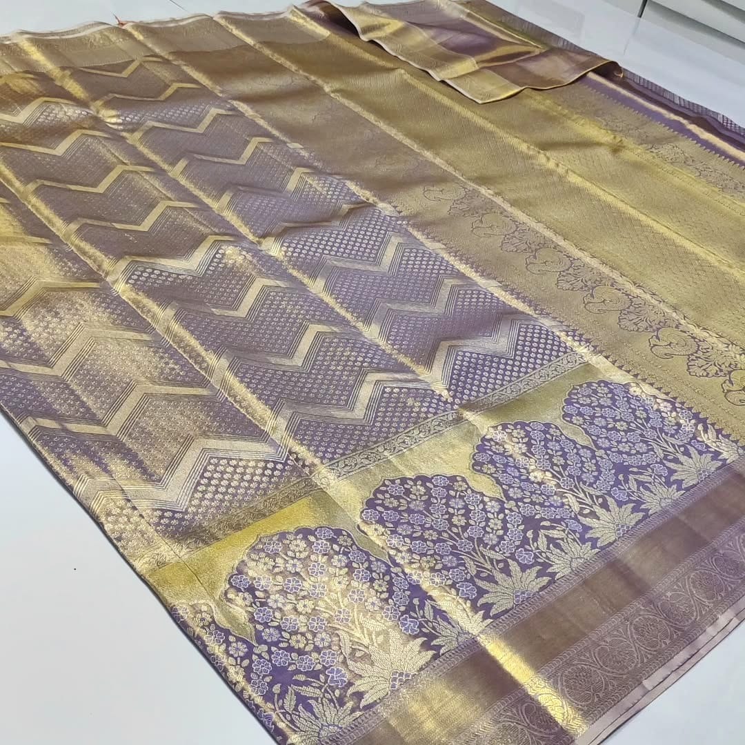Lavender Kanchipuram Handloom Tissue Brocade Silk Saree