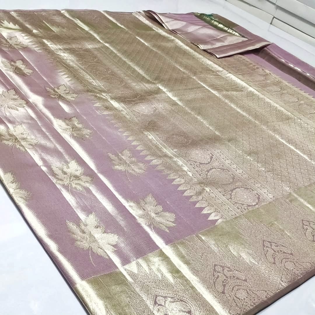 Lavender Kanchipuram Handloom Tissue Brocade Silk Saree