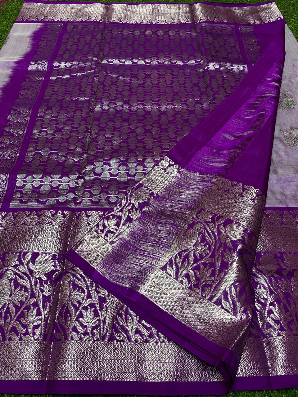Lavender Venkatagiri Handloom Pattu Silk Meenakari Saree