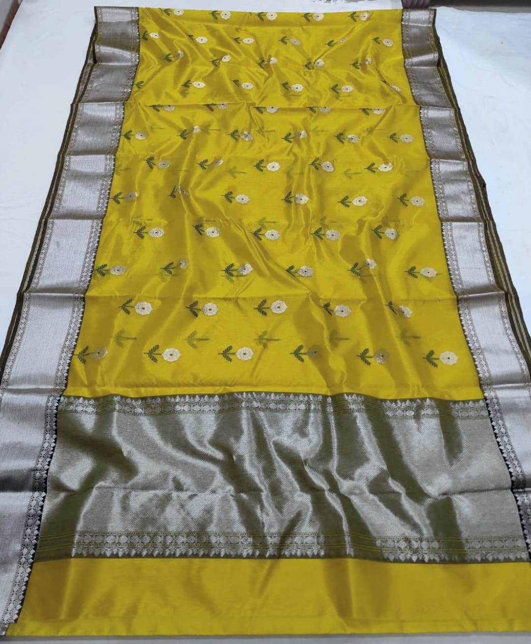 Lemon Chanderi Handloom Pattu Silk Meenakari Nakshi Saree