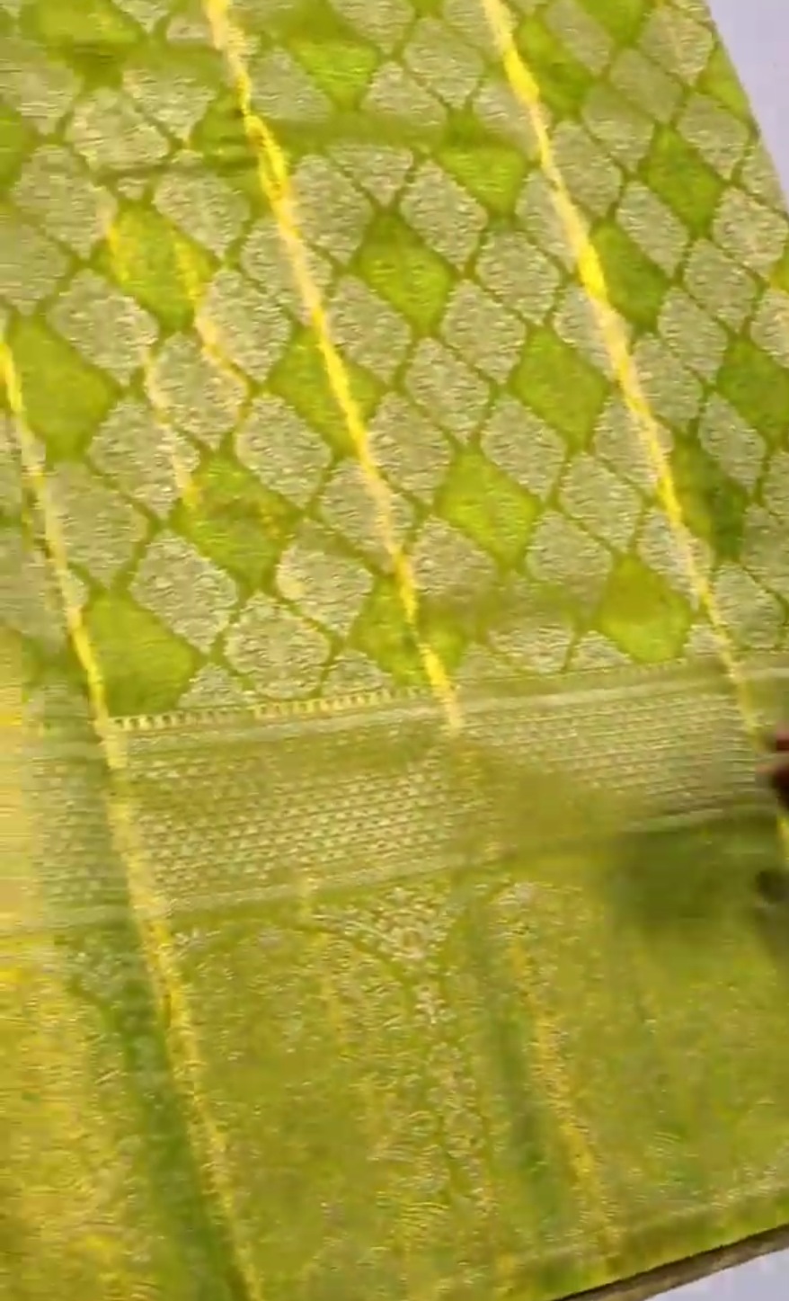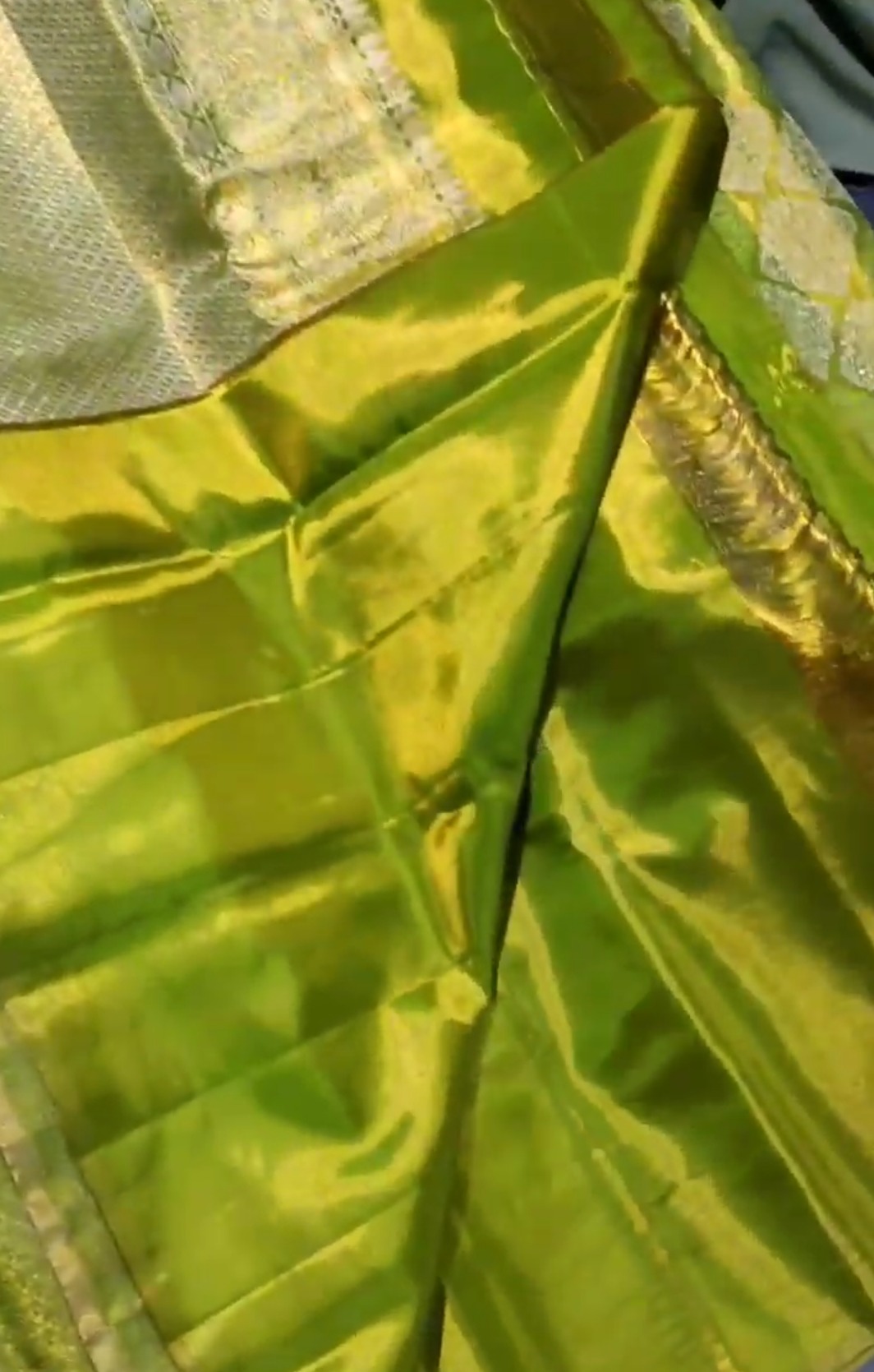 Lime Green Kanchipuram Handloom Tissue Brocade Silk Saree
