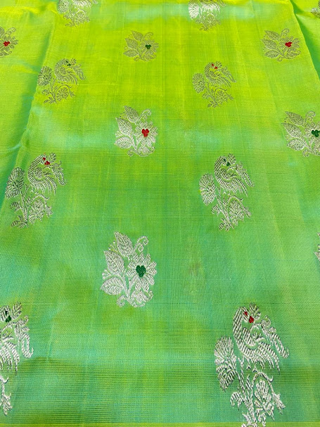 Dual Tone Lime Green Venkatagiri Handloom Pure Pattu Silk Saree