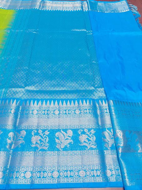 Dual Tone Green Venkatagiri Handloom Pattu Silk Saree