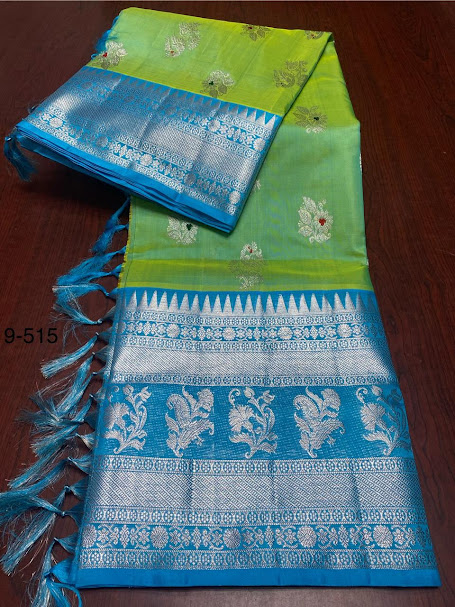 Lime Green Venkatagiri Handloom Pattu Silk Meenakari Saree