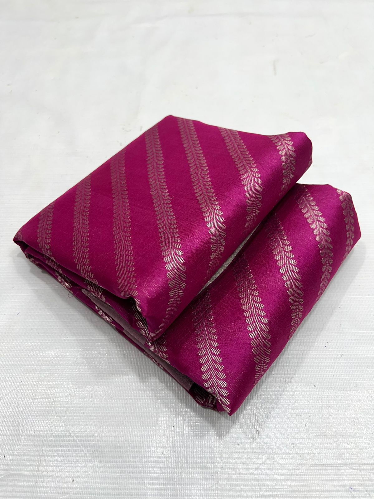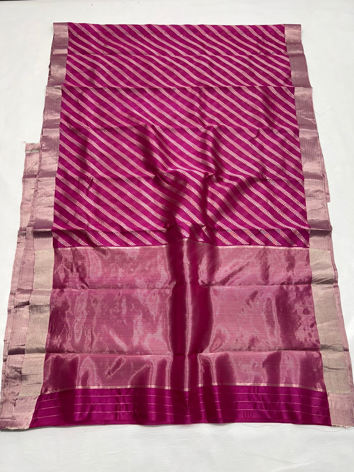 Dark Pink Chanderi Handloom Pattu Silk Mashru Borders Saree