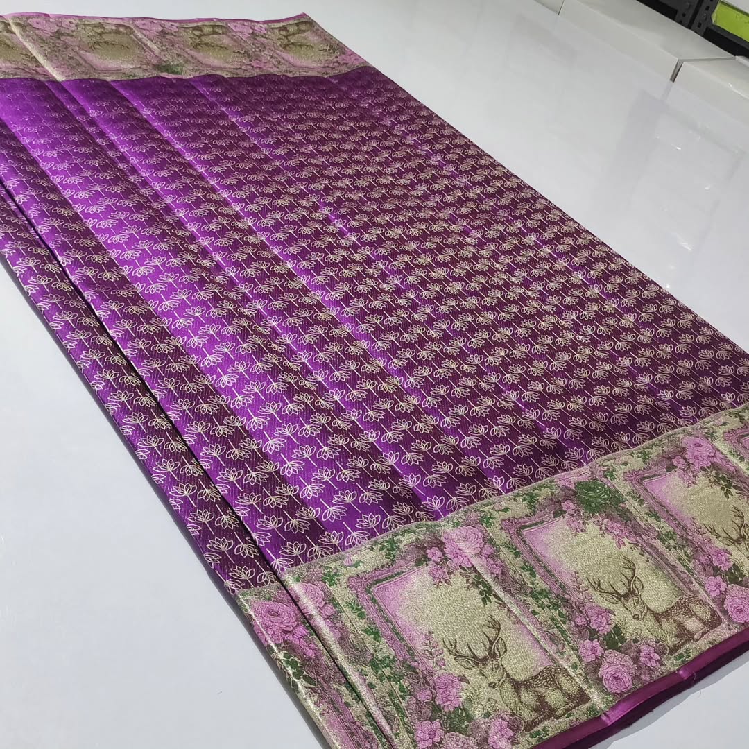 Magenta Kanchipuram Handloom Tissue Brocade Meenakari Silk Saree