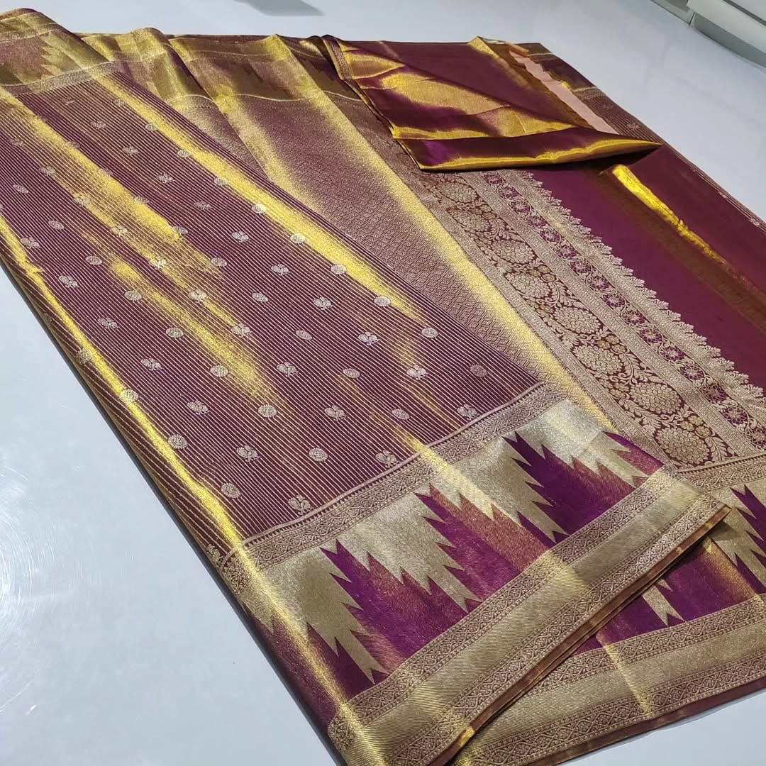 Temples, Brocade, Stripes, Meenakari, Silver Zari, Gold Zari