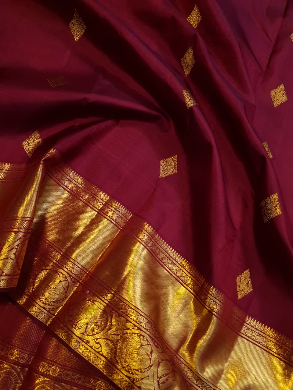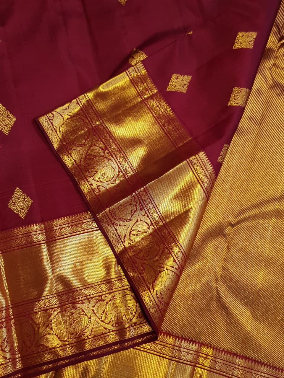 Wine Kanchipuram Handloom 2G Gold Pattu Silk Saree