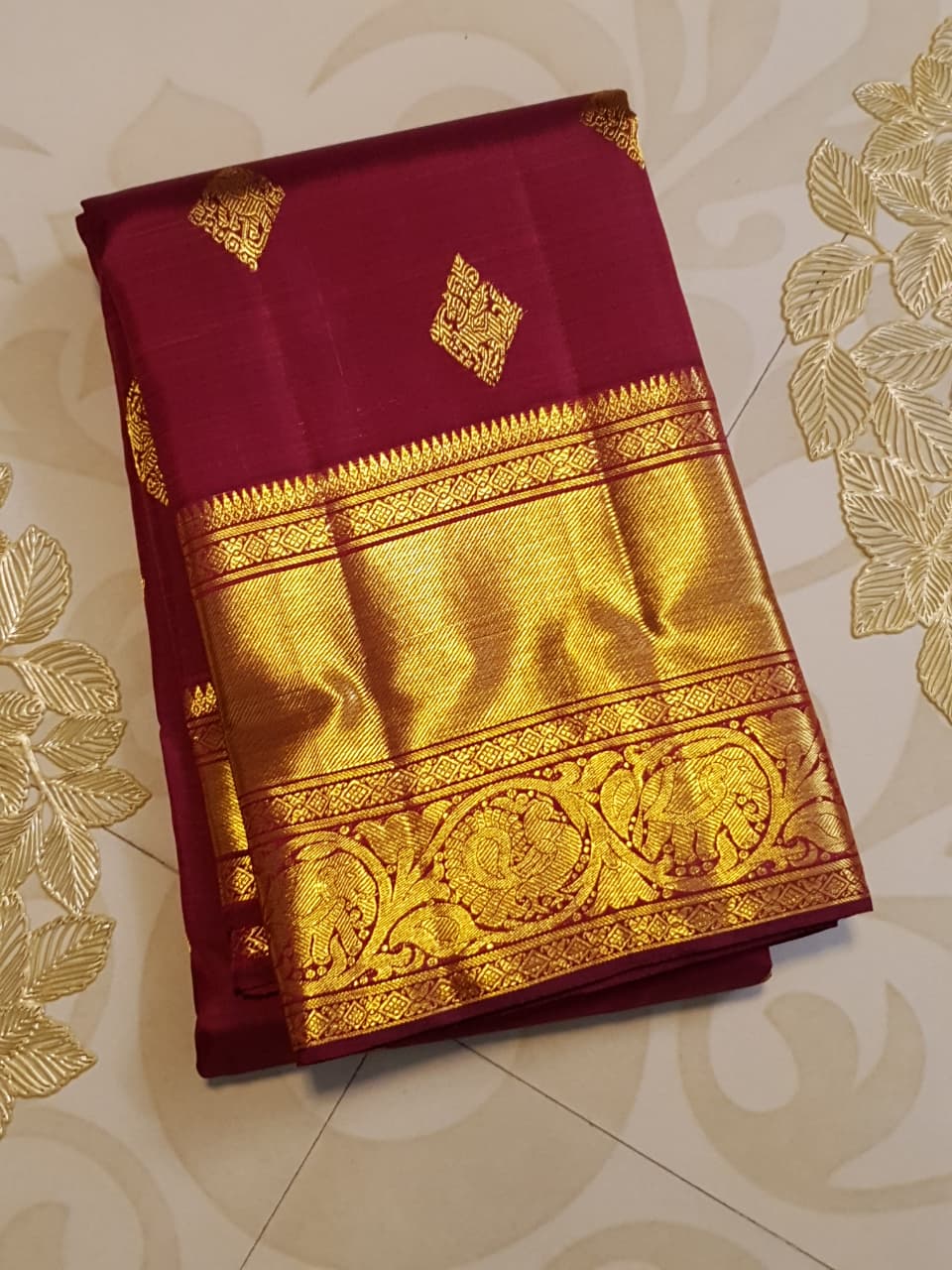 Maroon Kanchipuram Handloom 2G Gold Pattu Silk Saree