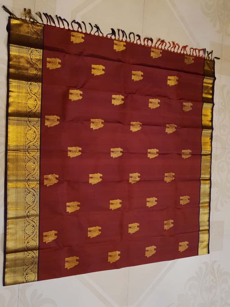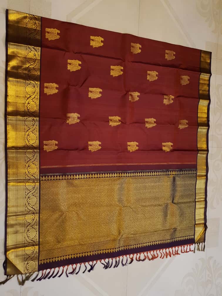 Maroon Kanchipuram Handloom 2G Gold Pattu Silk Saree