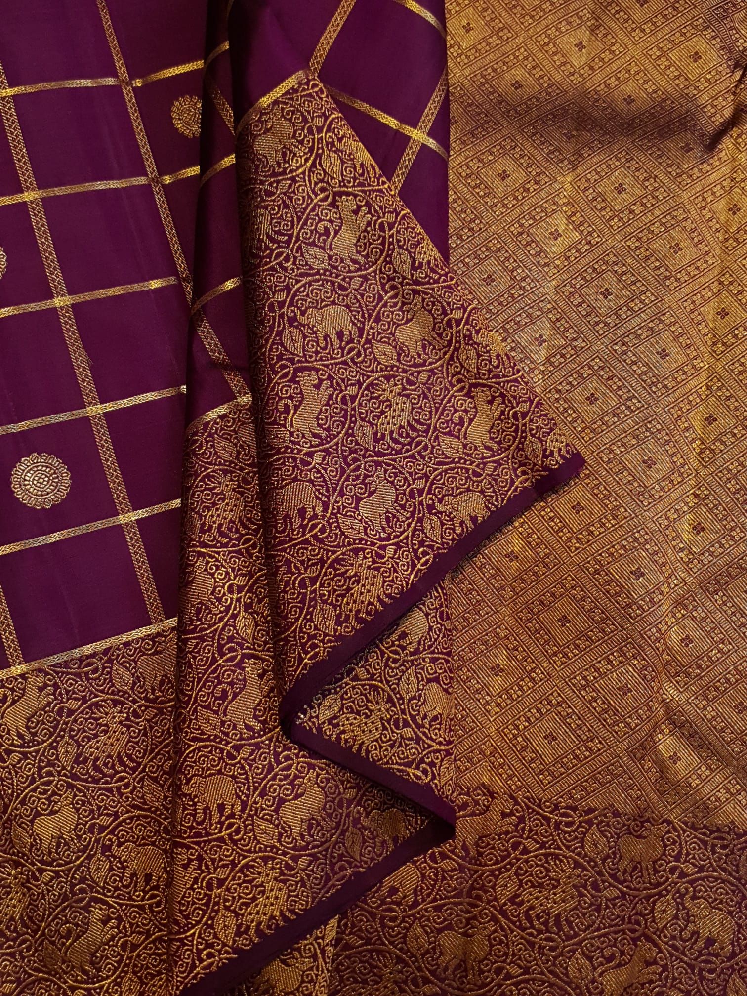 Maroon Kanchipuram Handloom 2G Gold Pattu Silk Saree