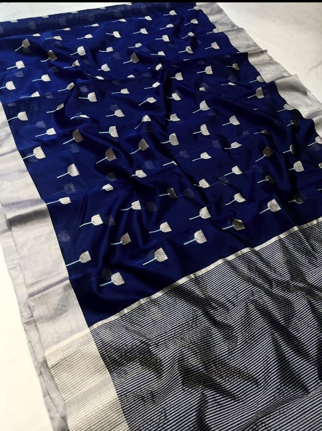Midnight Blue Chanderi Handloom Pattu Silk Meenakari Saree