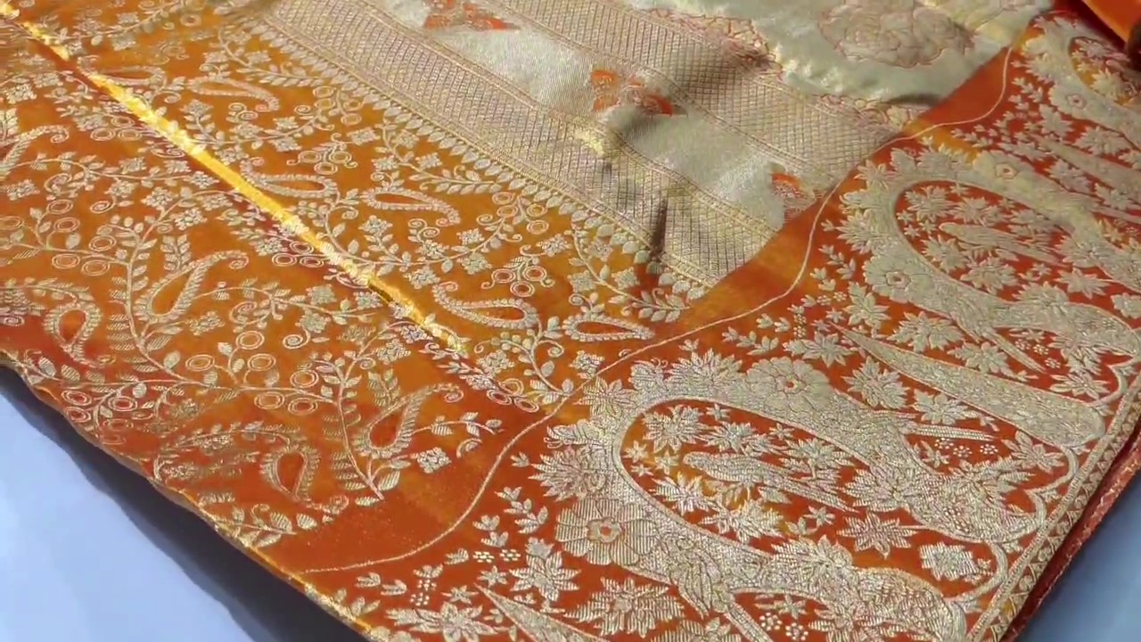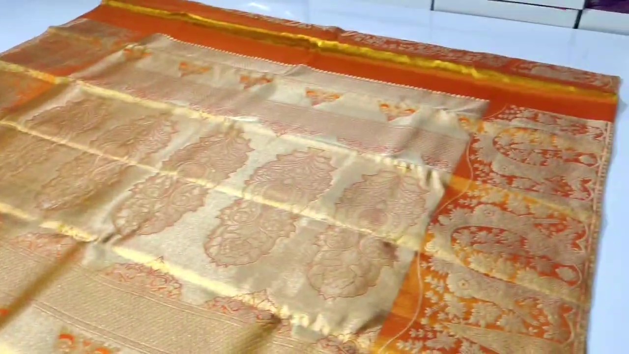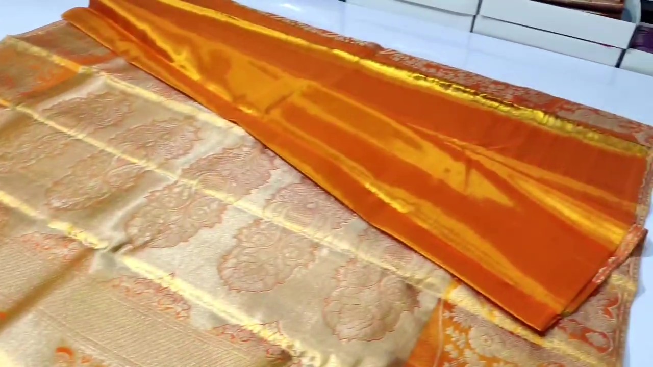 Orange Kanchipuram Handloom Tissue Brocade Silk Saree