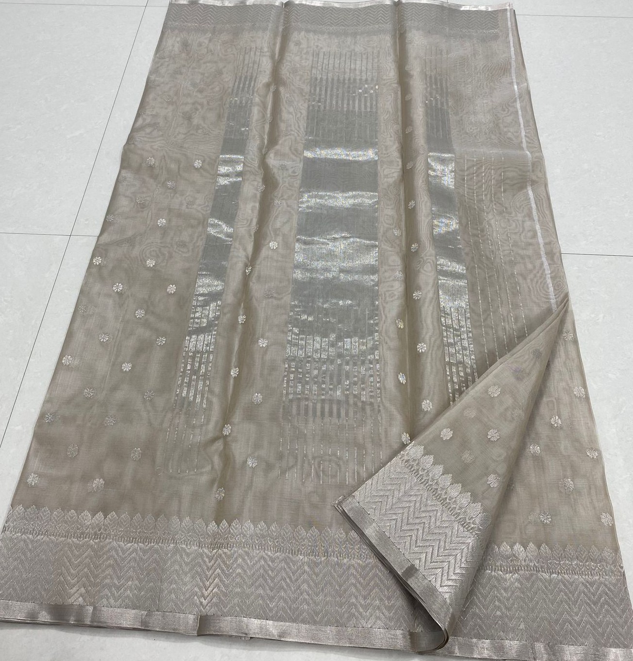 Pearl White Chanderi Handloom Katan Silk Saree