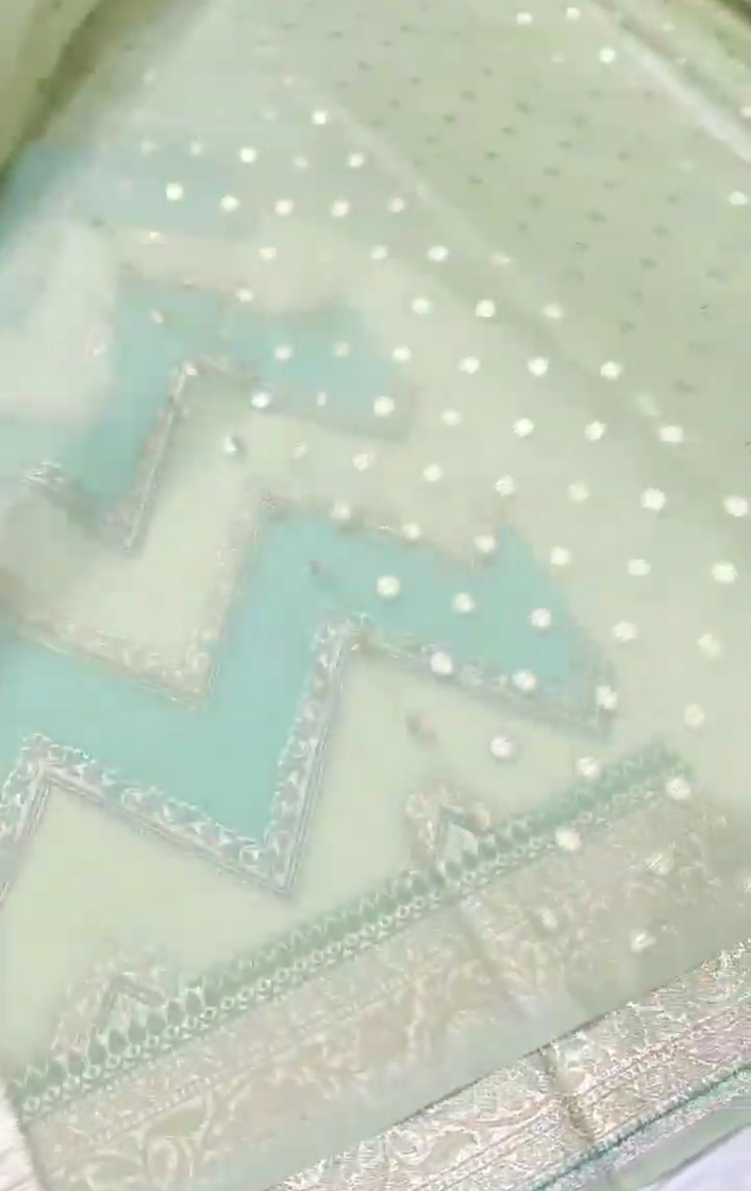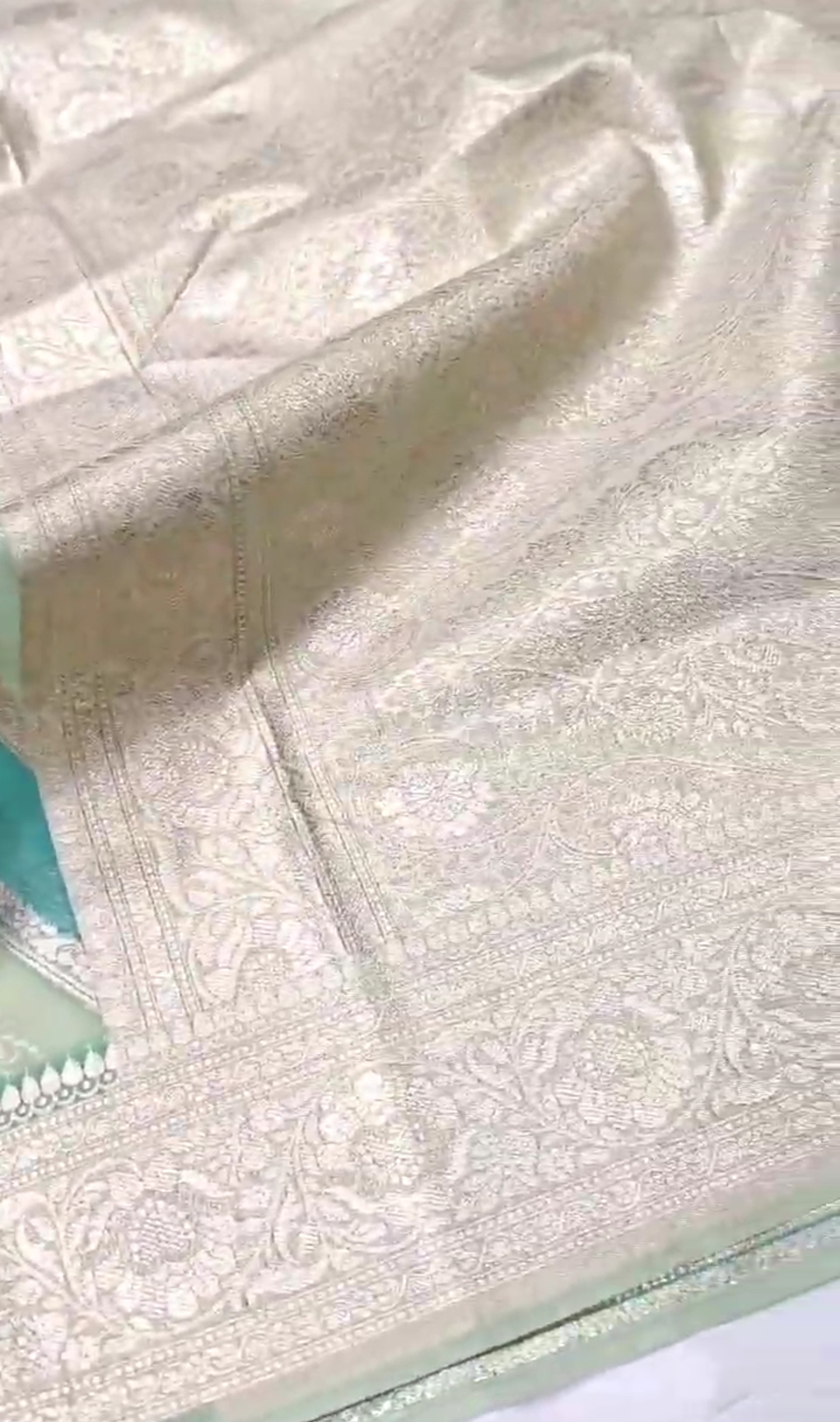 Pastel Green Banarasi Handloom Rangkat Kora Tissue Silk Saree
