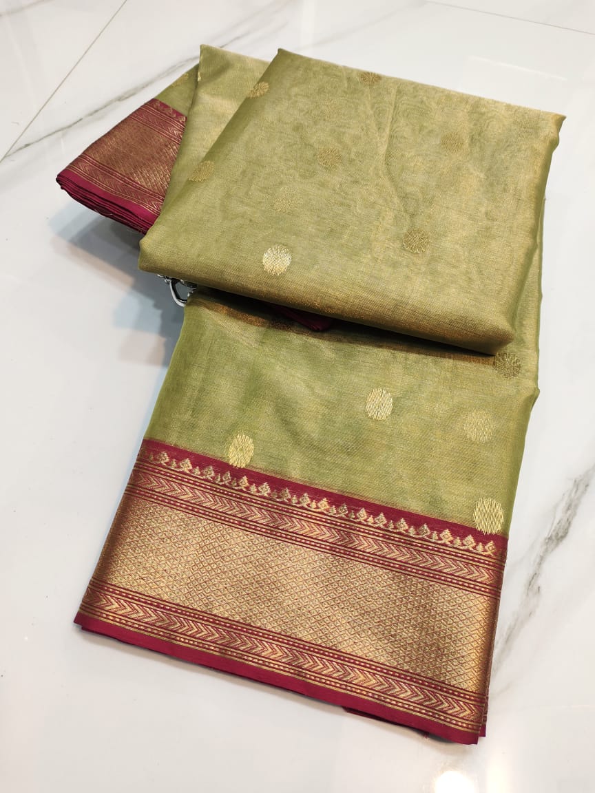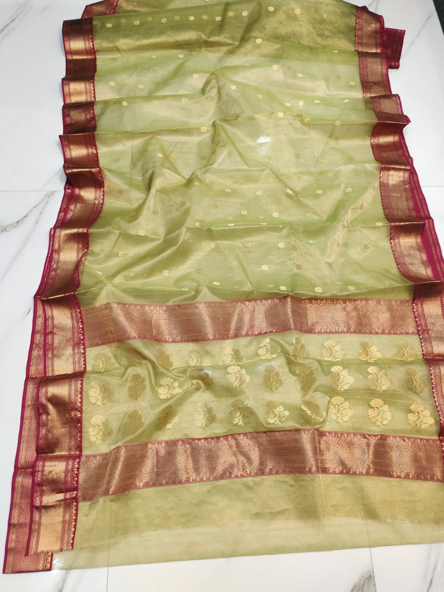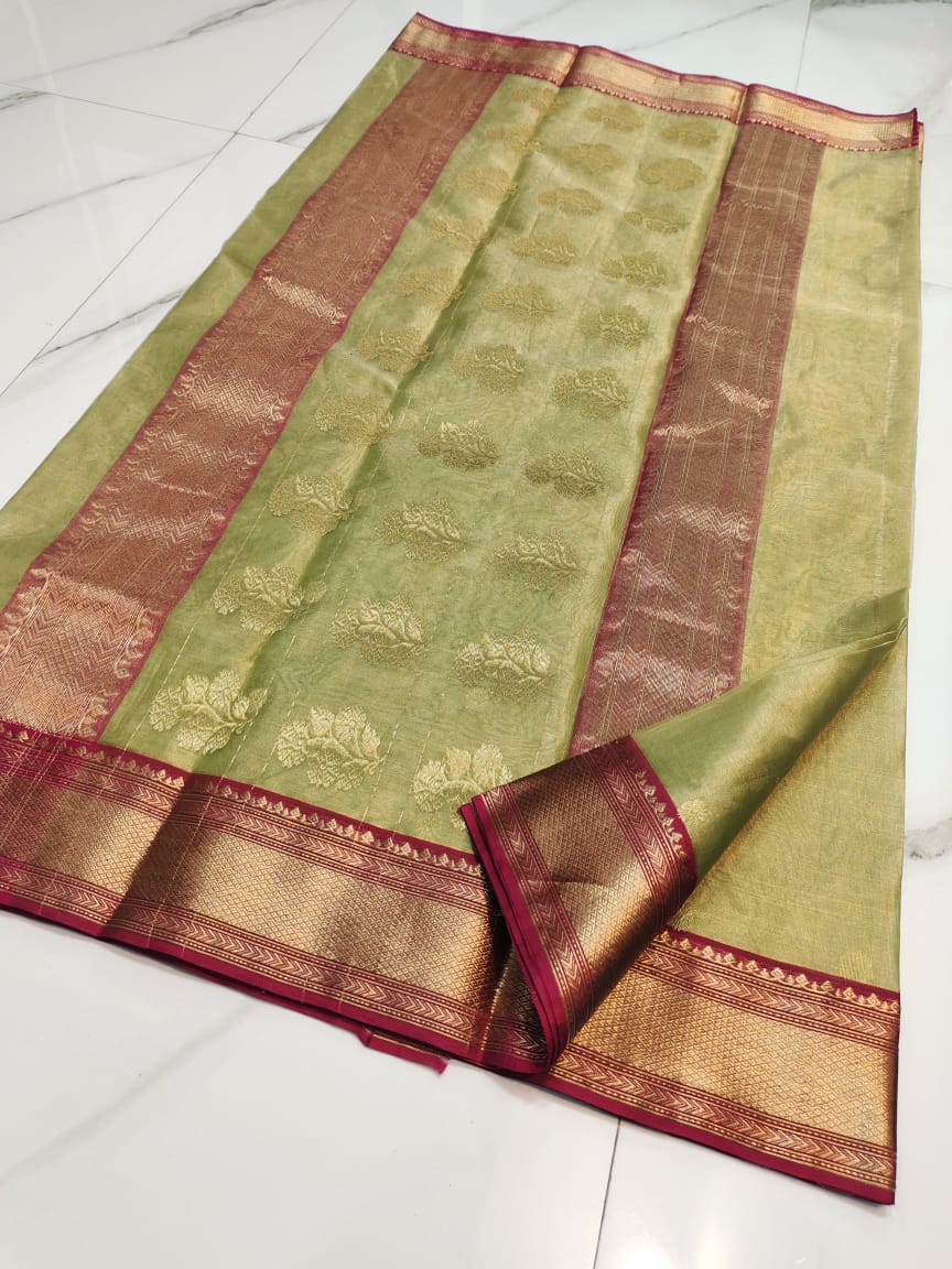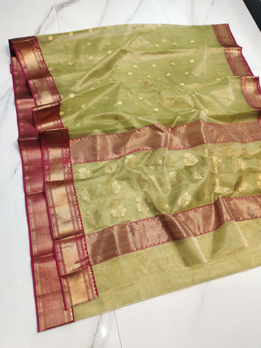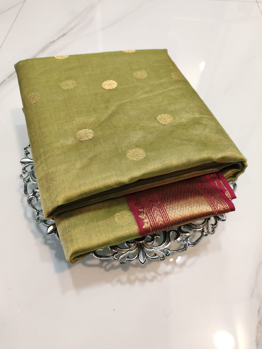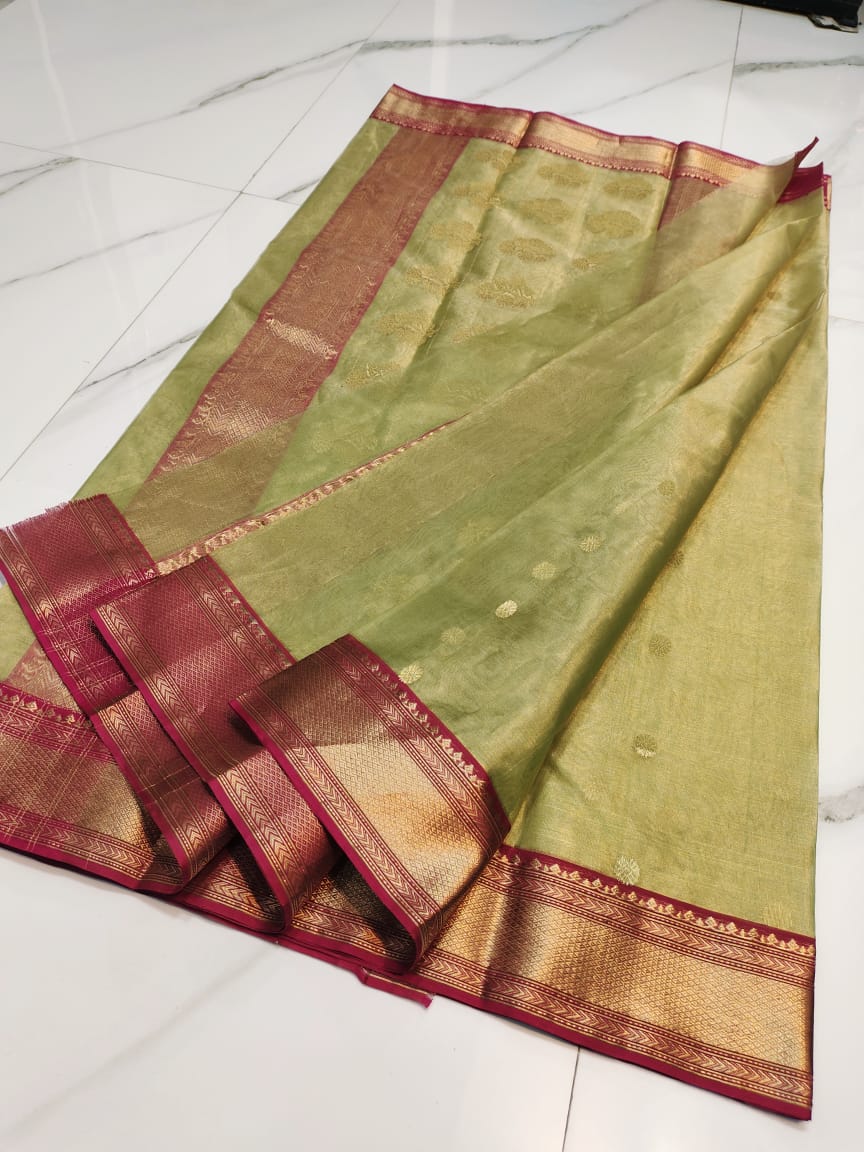 Pastel Green Chanderi Handloom Katan Tissue Silk Saree
