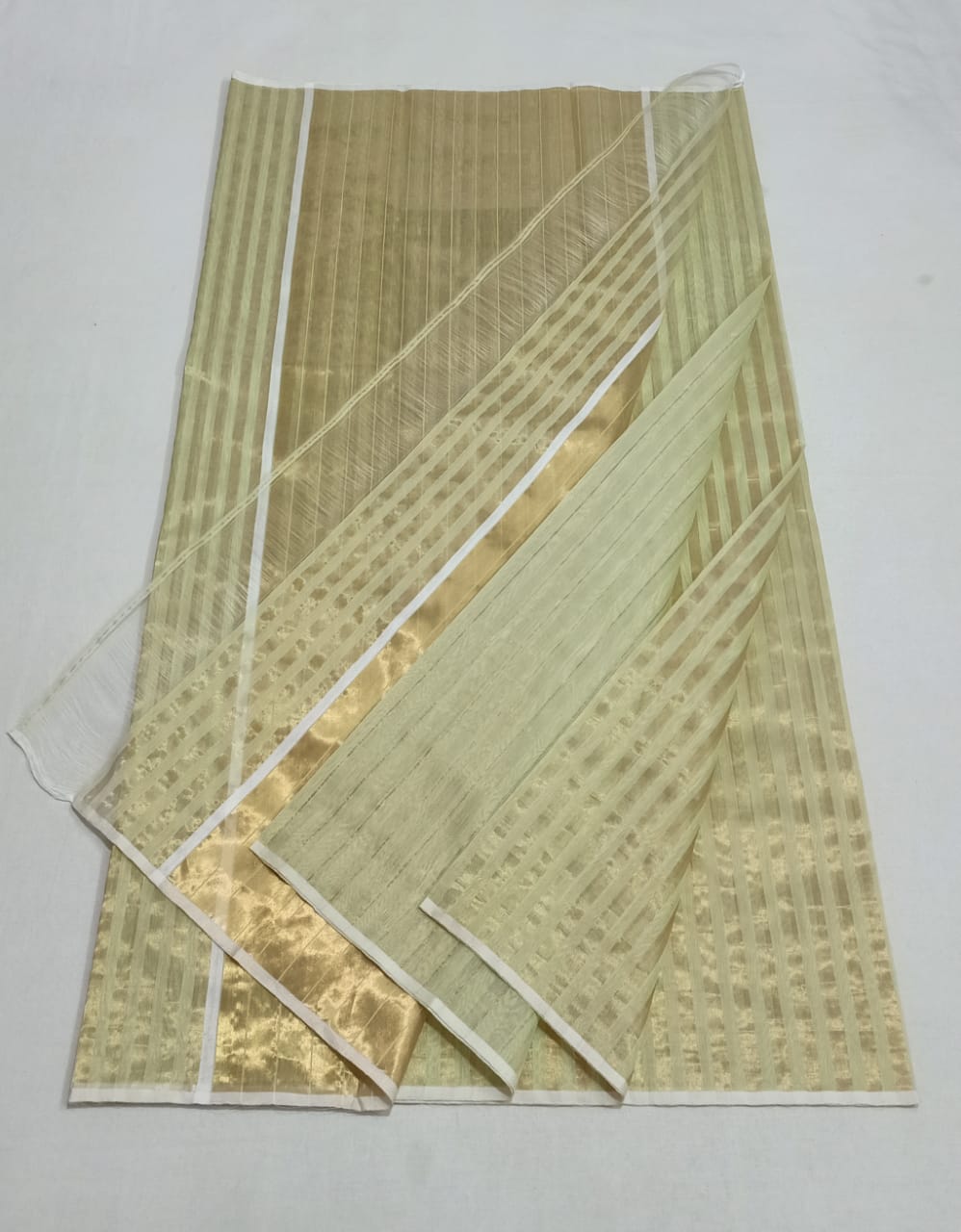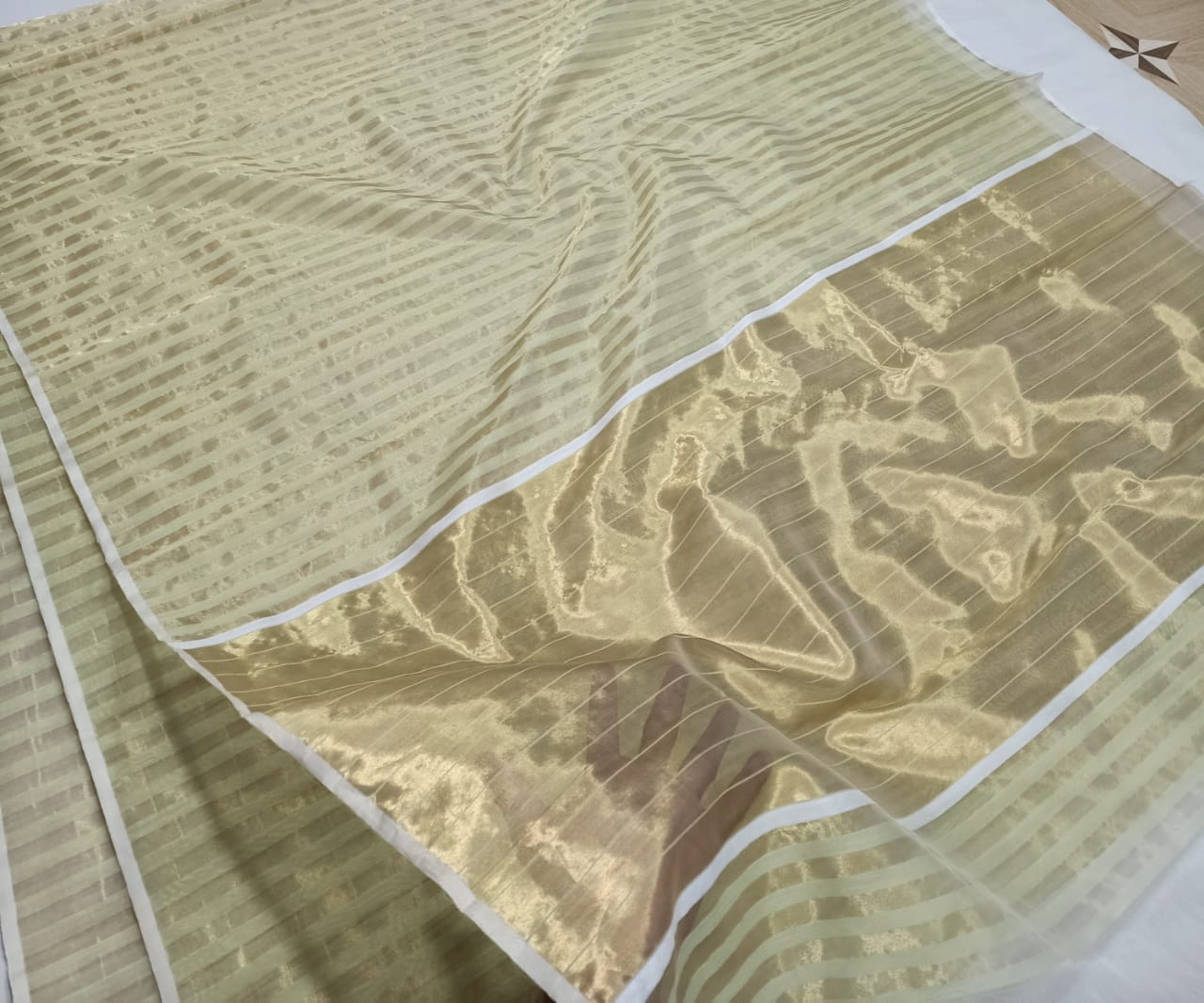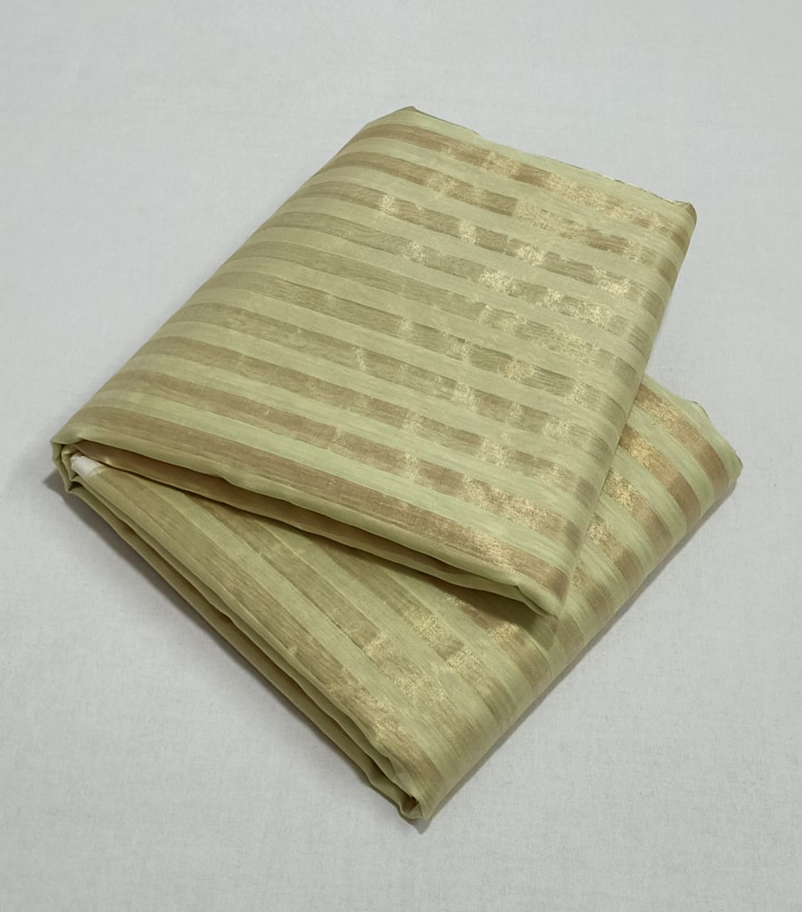 Pastel Lime Green Chanderi Handloom Cotton Silk Striped Saree
