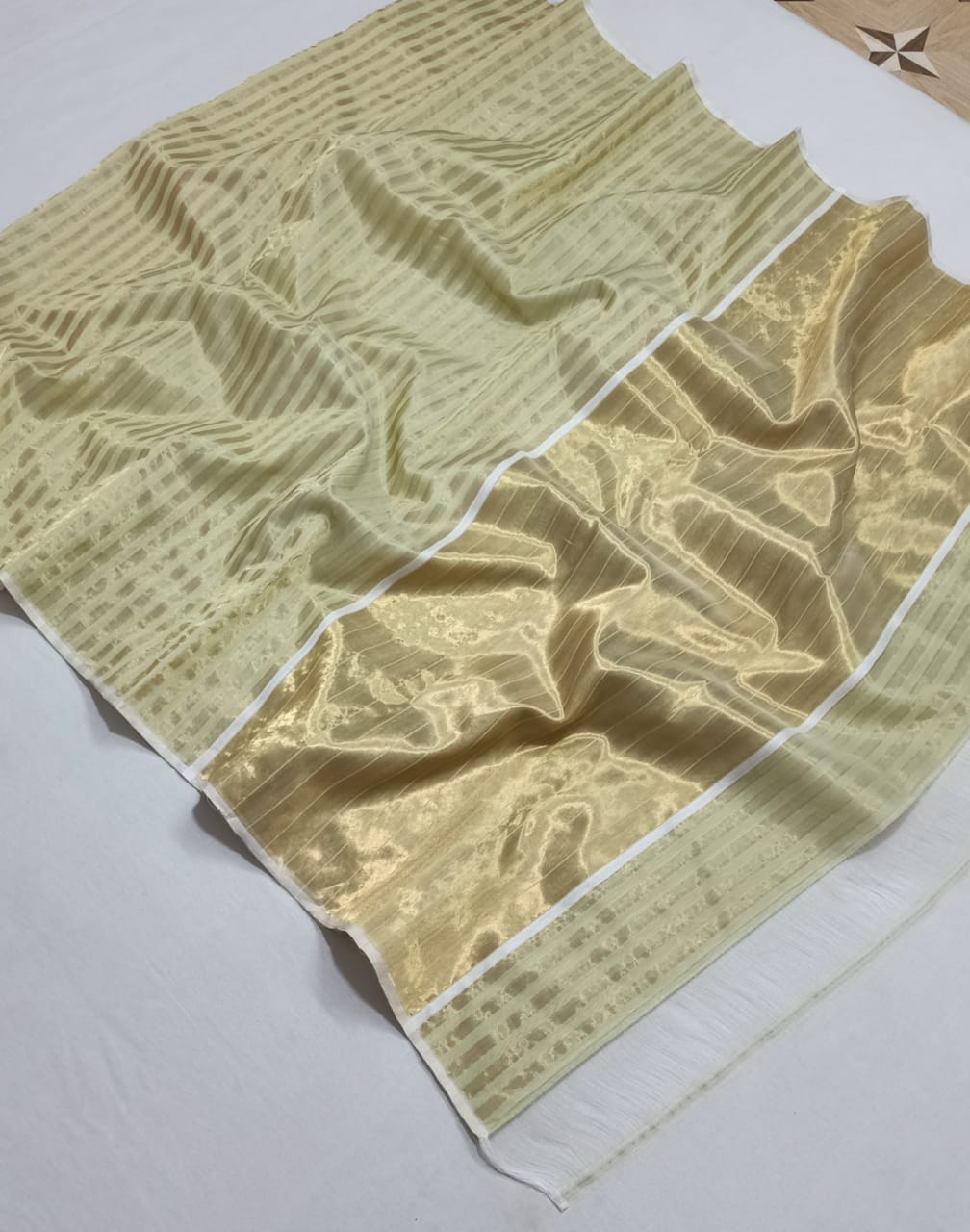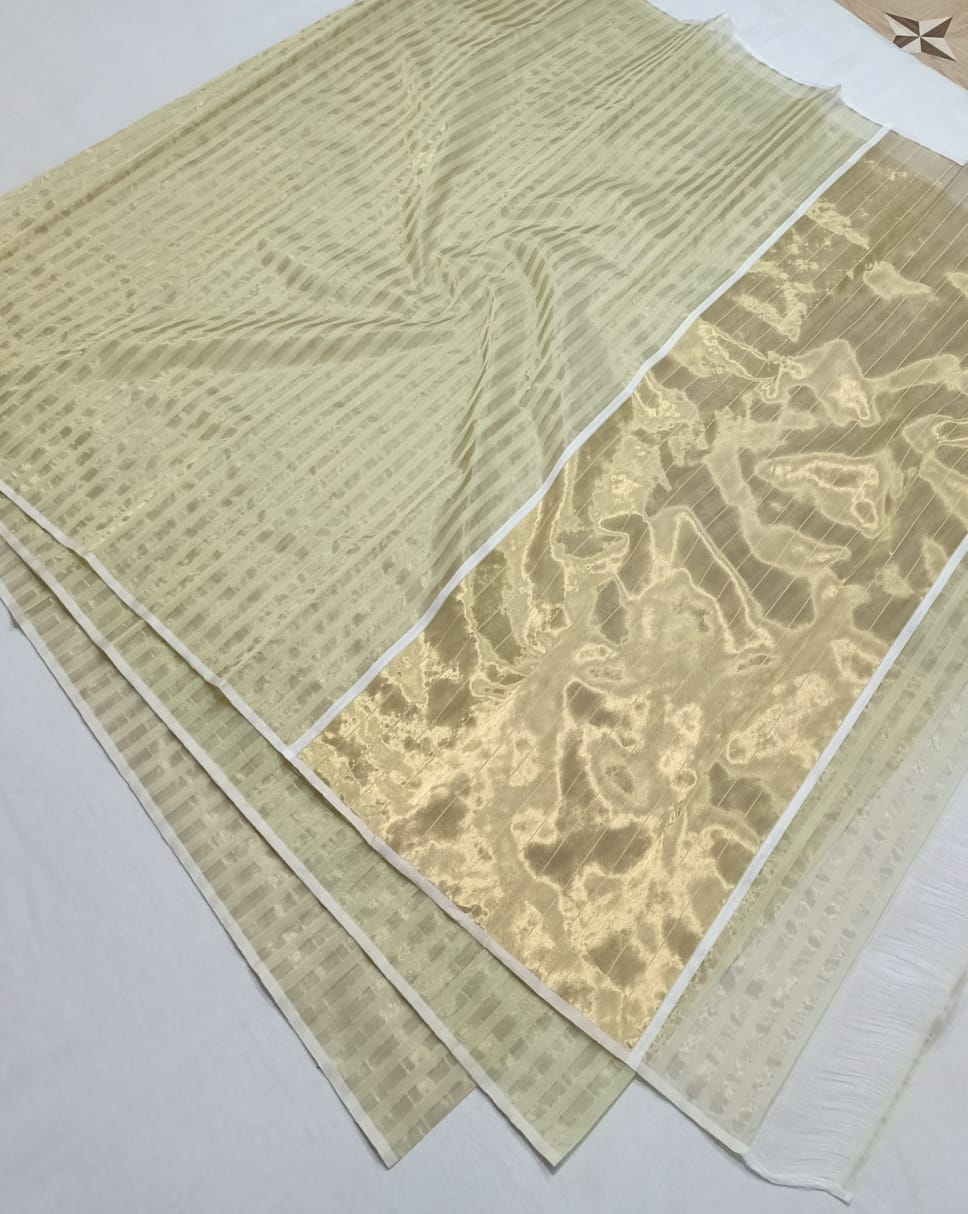 Cream Chanderi Handloom Cotton Silk Striped Saree